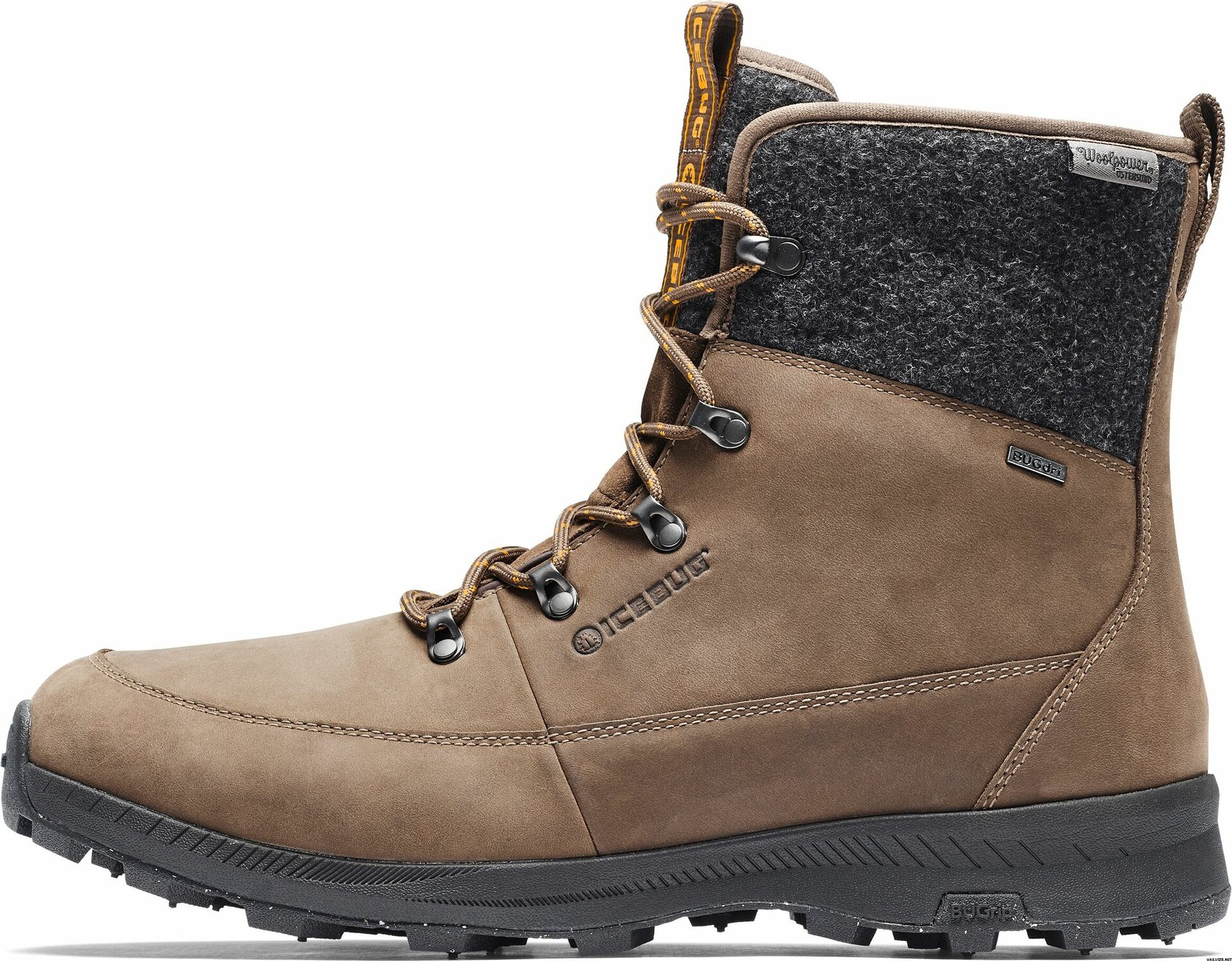 Icebug Adak BUGrip Woolpower is a grippy and classic looking nubuk leather winter shoe with 17 carbon steel studs and Woolpowers® surplus merino wool mix on the upper! High enough to keep your feet safe from cold and snow, last wide enough for wider feet. Liner is made of Bluesign® approved polyester fleece and the insole has the same Woolpowers® surplus merino wool mix (50% merino wool and 50% synthetic fiber) than the upper of the shoe. Outsole is made of sturdy rubber with 20% of recycled material and the 17 intelligent carbon steel studs will keep you going no matter how slippery it gets.