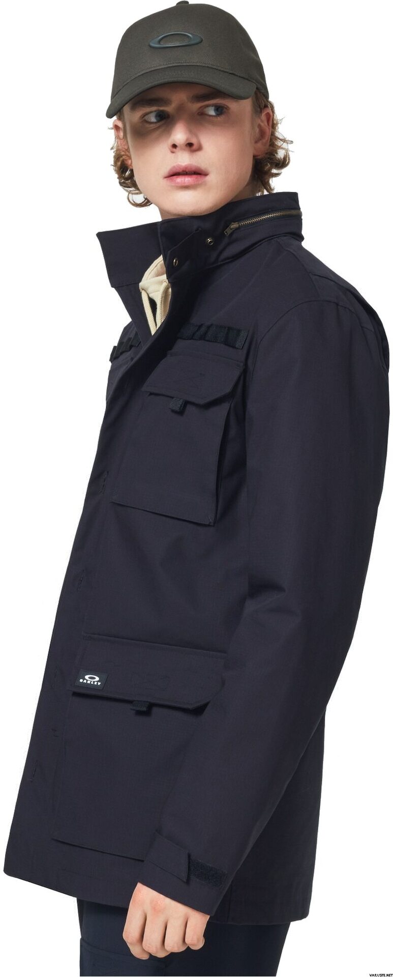Functional details and advanced design make this Utility Multi Pocket Jacket a must-have for tackling the elements in modern style. A durable all-Cotton fabric, snap-back track collar, and full-length YKK zipper with button down flap closure deliver exceptional warmth, while four oversized Velcro® flap pockets protect your essentials. Articulated shoulder panels enhance ease of movement, and the adjustable Velcro® sleeves add additional versatility. It’s finished with a concealed, zippered hood, utility bands, and an iconic Oakley logo.