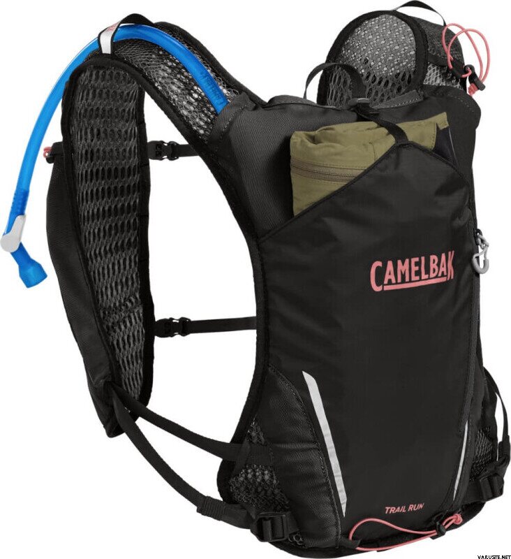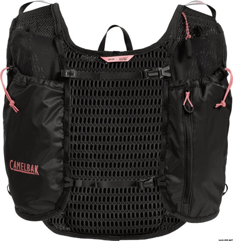 Camelbak Trail Run Vest 1L Womens е опростена раница за бягане по планински преходи, която държи хидратацията и най-важното под ръка за стабилно усещане с минимално отскачане. Леката, еластична конструкция прилепва плътно към тялото и помага за намаляване на натрупването на топлина по време на интензивни натоварвания. Предната презрамка позволява съхранение на меките термоси, а задното отделение побира ключови вещи, като например дъждобран. Специално оформените презрамки и задният панел са специално пригодени за дамска кройка.