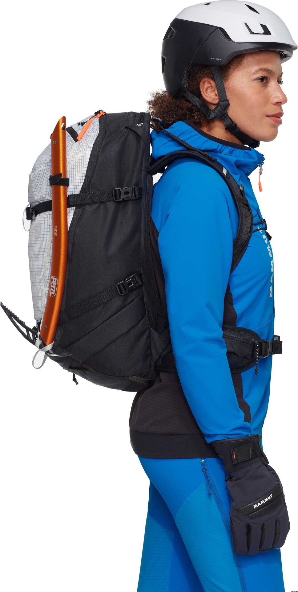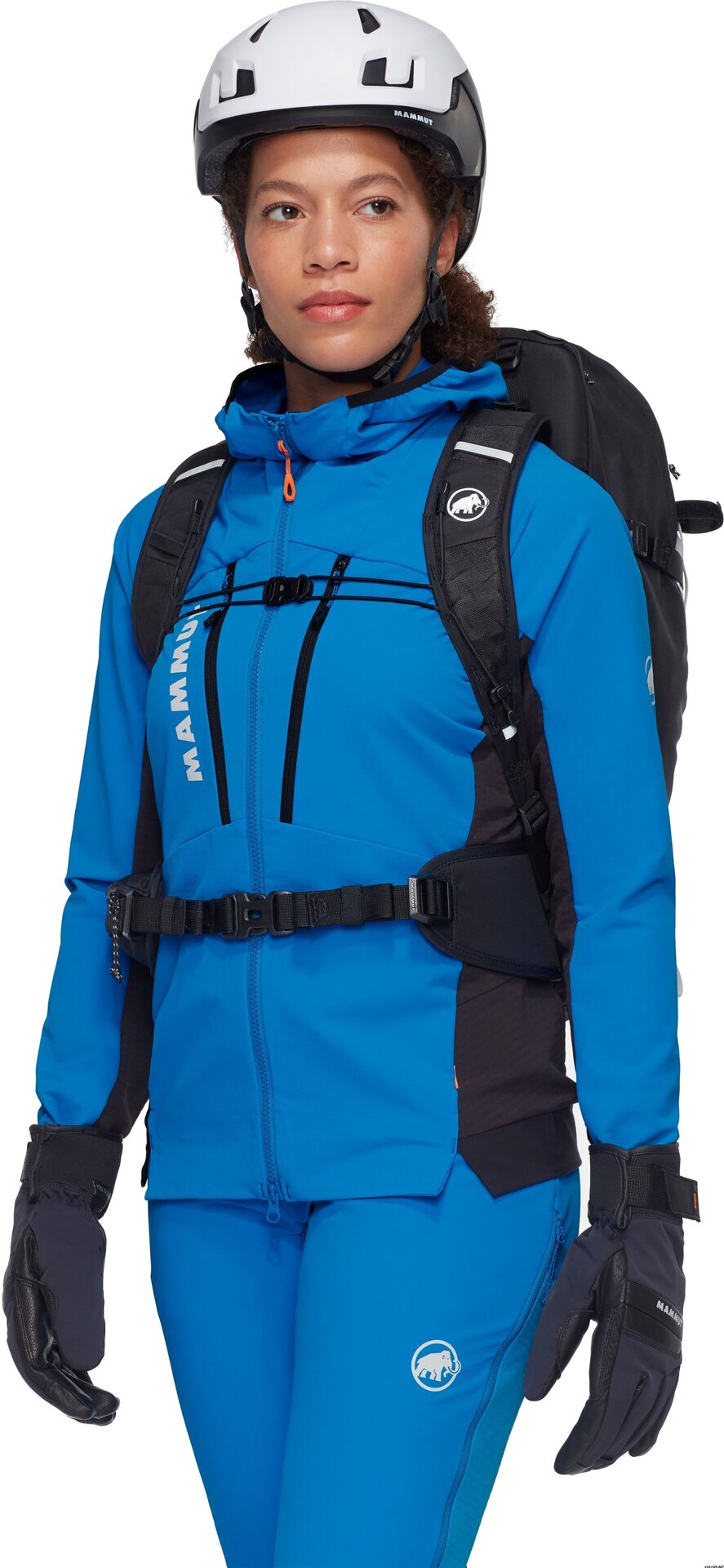 The Mammut Aenergy ST 32 Women is a versatile ski touring backpack designed to keep you nimble on the slopes while ensuring comfort and durability. This lightweight pack features a carrying system specifically tailored to the female form, with adjustable shoulder straps, a hip belt, and back length for a secure fit. The aluminum frame efficiently distributes the load, and the main compartment is easily accessible through a full-length zipper. Ideal for extended ski tours, it offers multiple attachment options for skis, snowboards, and essential gear like ice axes and trekking poles.