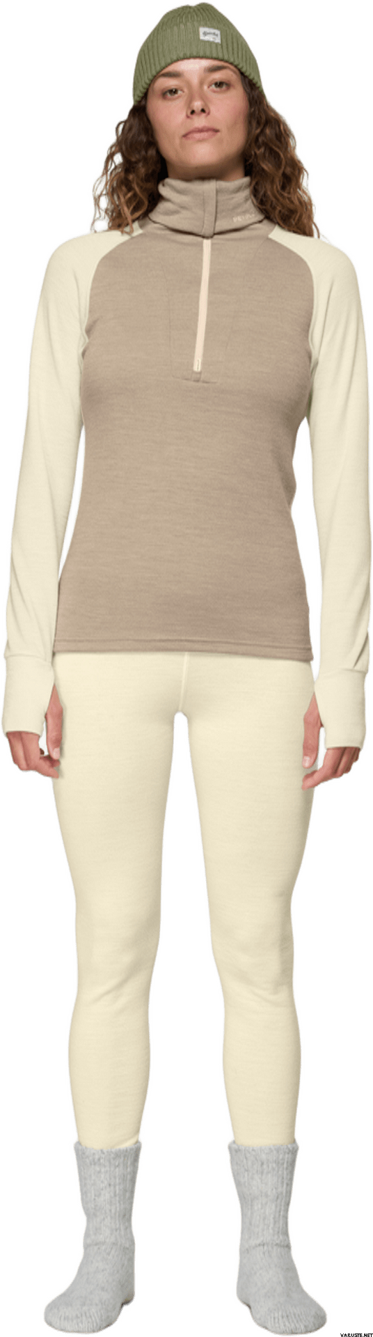 Devold Expedition Merino Silk Zip Neck за жени съчетава комфорт и производителност в дизайн с дълъг ръкав. С тегло от 235 g/m² и влакна, вариращи от 20,5 до 18,7 микрона, той предлага изключителна топлина, мекота и дишане. Вътрешната част е изработена от 100% мериносова вълна за комфорт, докато външната страна смесва 90% мериносова вълна с 10% коприна за гладко покритие. Перфектен за наслояване в студено време и взискателни дейности на открито.