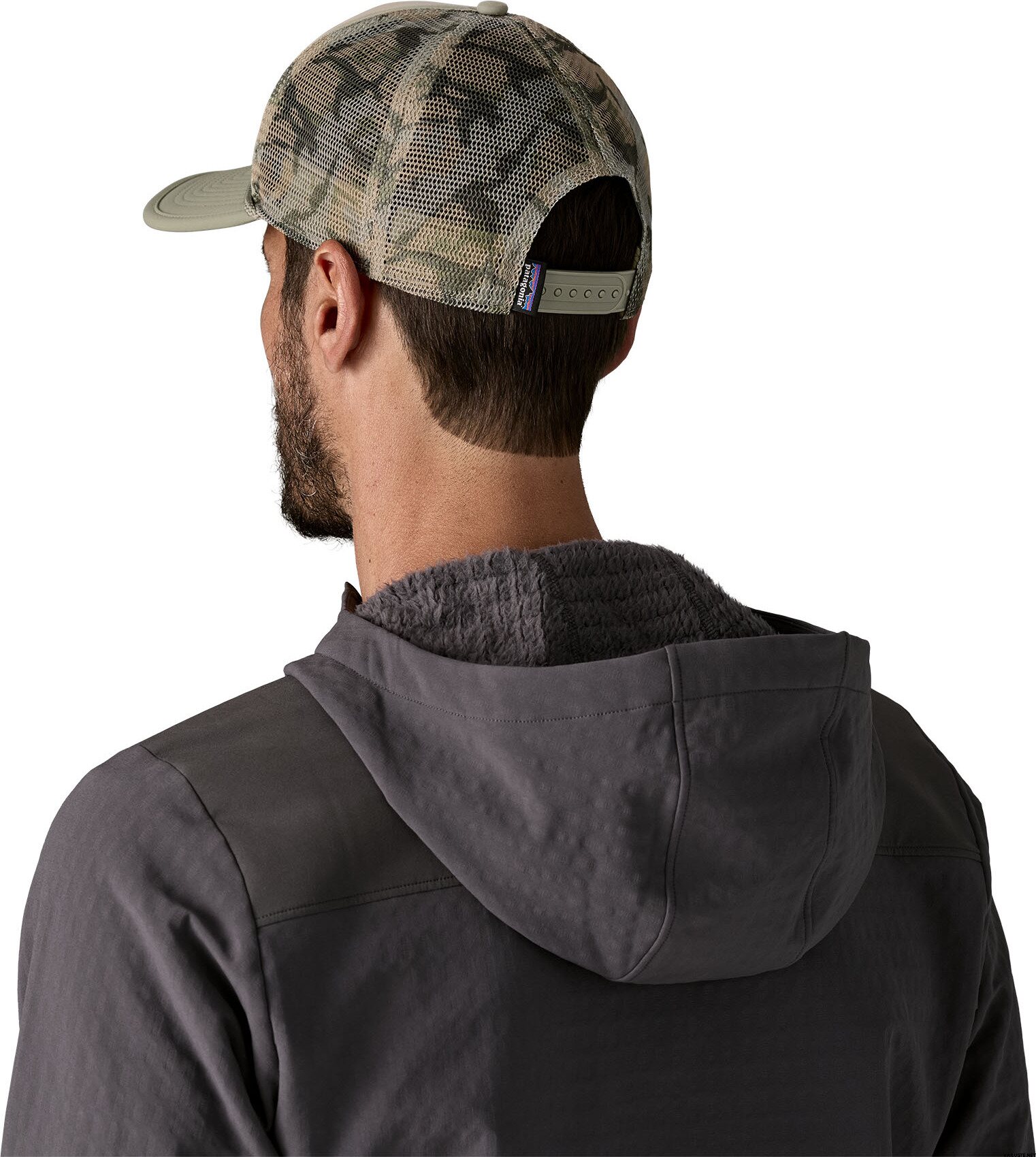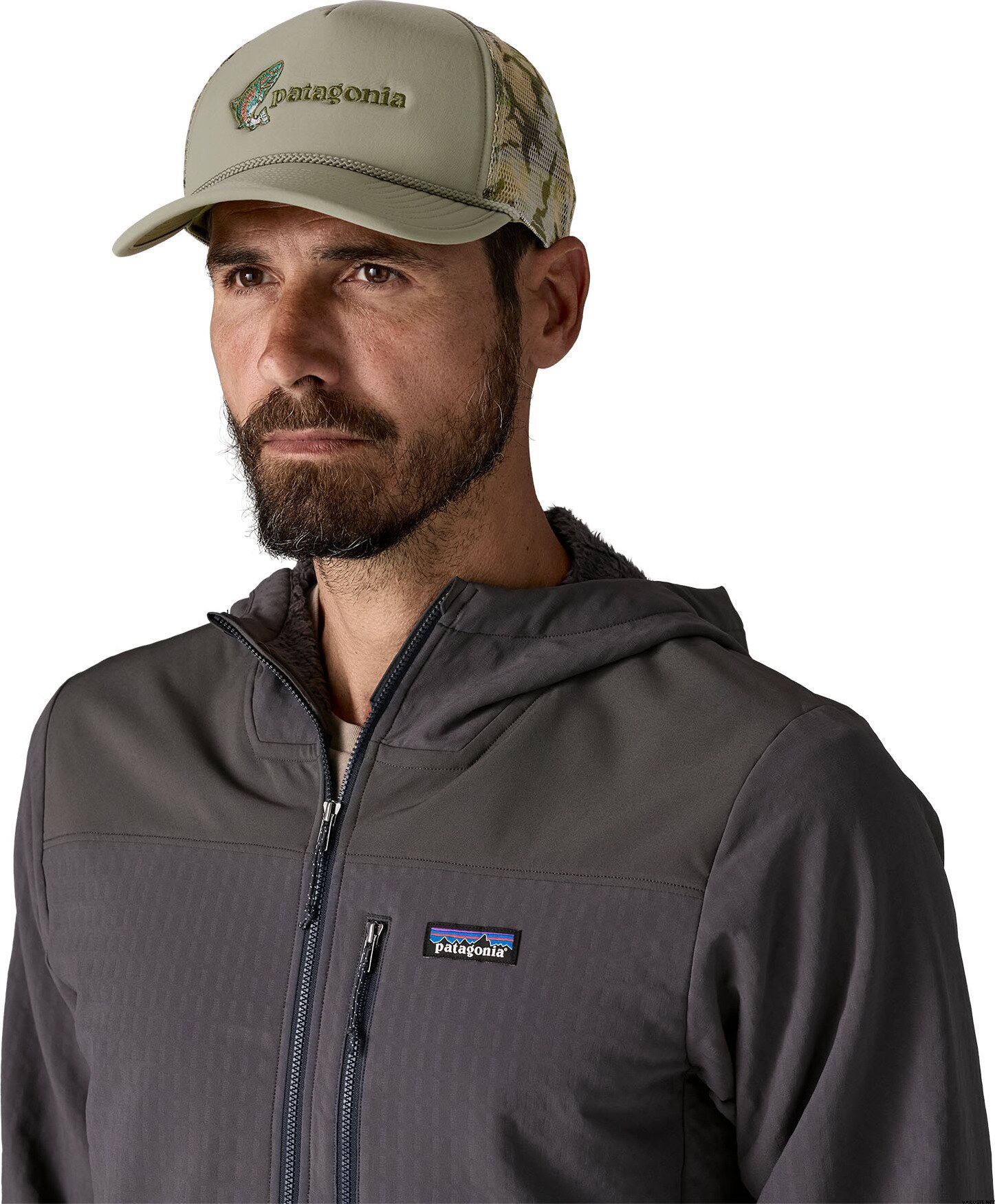 The Patagonia Broadcaster Hat е проста шапка в стил шофьор на камион, която прави изявление със своя смел преден дизайн. Тази шапка с висока корона е идеална за предпазване от слънцето и потта, благодарение на по-дългата периферия и дишащата мрежеста задна част. Изработен във фабрика, сертифицирана за справедлива търговия, той поддържа етичните трудови практики.