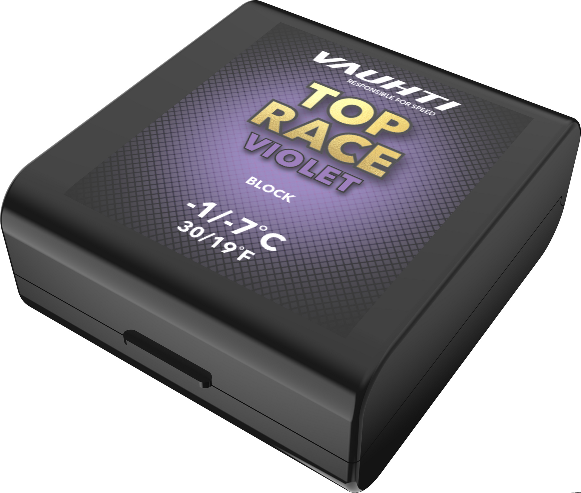 Vauhti Top Race Violet Block 12g -1…-7 предлага високоефективно горно покритие, предназначено за състезателни ски. Този продукт е изработен чрез щателен двуетапен процес, при който суровият прах първо се хомогенизира и след това се компресира в блокова форма. За да постигнете оптимални резултати, подгответе основата на ските с восък за плъзгане Race line, подходящ за снежните условия. Нанесете покритието Top Race Block върху цялата повърхност за плъзгане, след което разтъркайте със синтетичен корк с полар и завършете с найлонова четка.