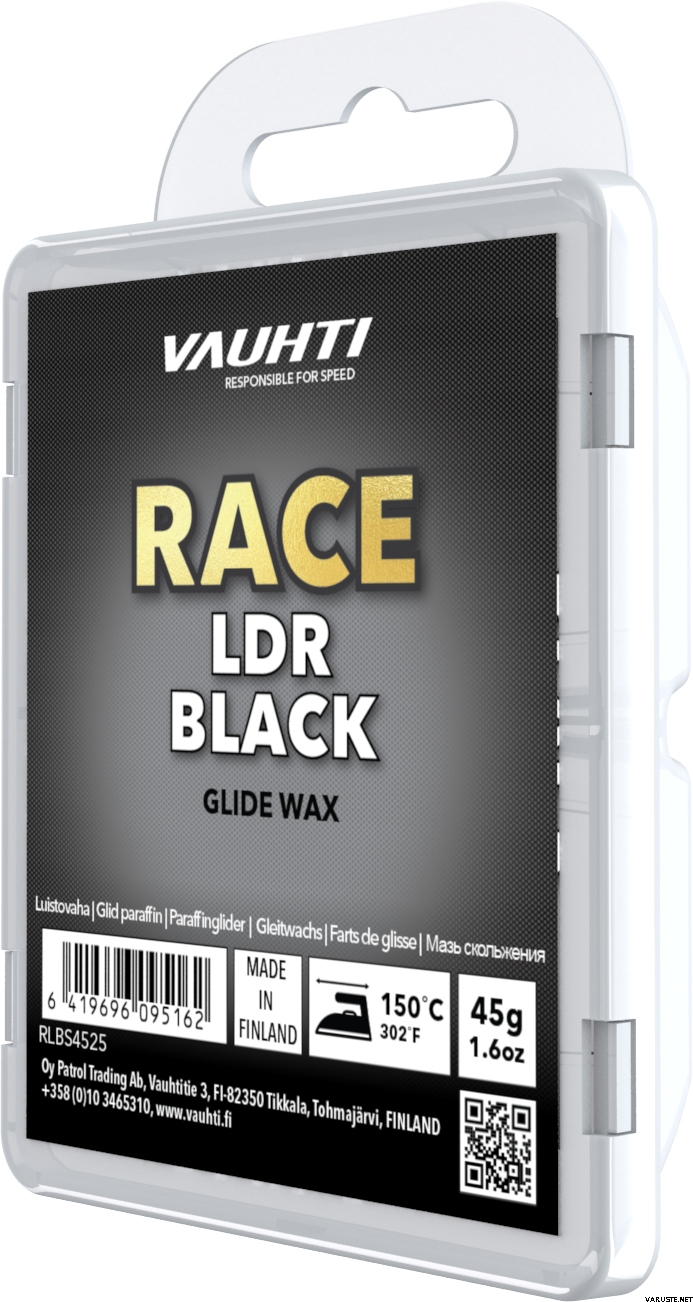 Vauhti Race LDR Black 45g Glide Wax е първокласен восък за плъзгане, предназначен за тези, които дават приоритет на дълготрайността на ски ваксата си. Този восък за плъзгане е щателно формулиран, за да създаде оптимална връзка между основата на ските и всеки допълнителен восък, нанесен отгоре. Той повишава издръжливостта на восъчния слой и може да се използва ефективно самостоятелно при различни снежни и метеорологични условия.