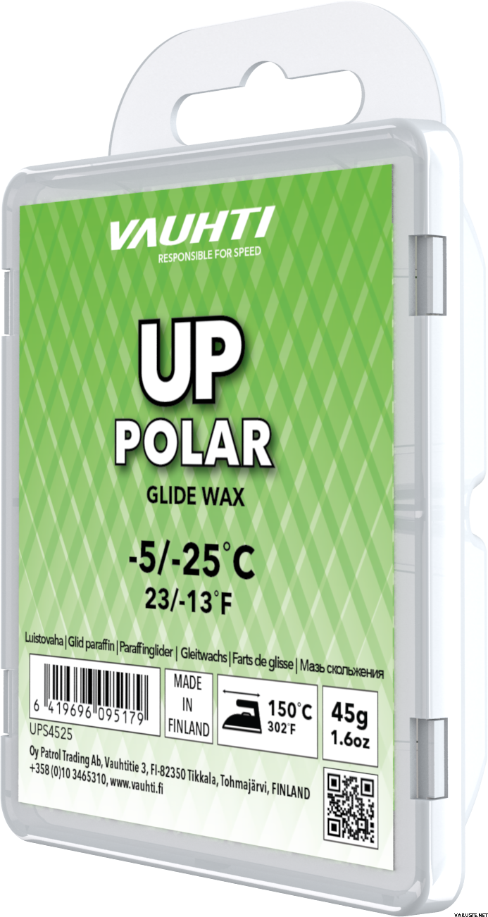 Vauhti Up Polar Green 45g -5…-25 Glide Wax е създаден за скиори, които изискват висока производителност по време на тренировки. Този плъзгащ восък е идеален както за активни, така и за състезателни скиори, предлагайки плавно и ефикасно плъзгане по снега. Формулата му включва първокласни въглеводородни съставки, цинков стеарат и силициев восък, осигуряващи не само отлична производителност, но и впечатляваща издръжливост.