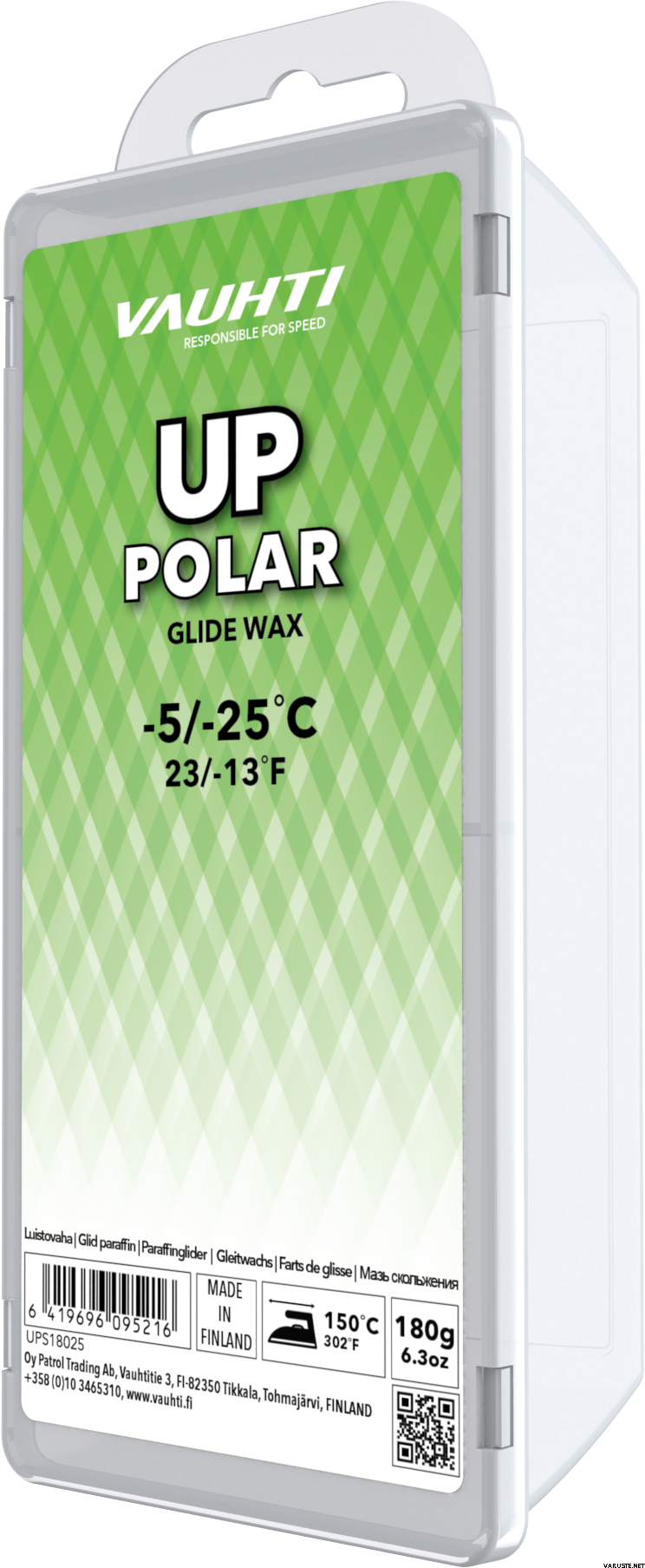 Vauhti Up Polar Green 180g -5…-25 Glide Wax е създаден за скиори, които изискват висока производителност по време на тренировки. Този плъзгащ восък е идеален както за активни, така и за състезателни скиори, предлагайки плавно и ефикасно плъзгане по снега. Формулата му включва първокласни въглеводородни съставки, цинков стеарат и силициев восък, осигуряващи не само отлична производителност, но и впечатляваща издръжливост.