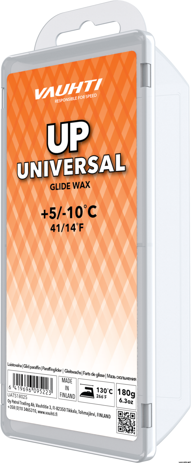 Vauhti Up Universal Orange 180g +5…-10 Glide Wax е създаден за скиори, които изискват висока производителност по време на тренировки. Този плъзгащ восък е идеален както за активни, така и за състезателни скиори, предлагайки плавно и ефикасно плъзгане по снега. Формулата му включва първокласни въглеводородни съставки, цинков стеарат и силициев восък, осигуряващи не само отлична производителност, но и впечатляваща издръжливост.