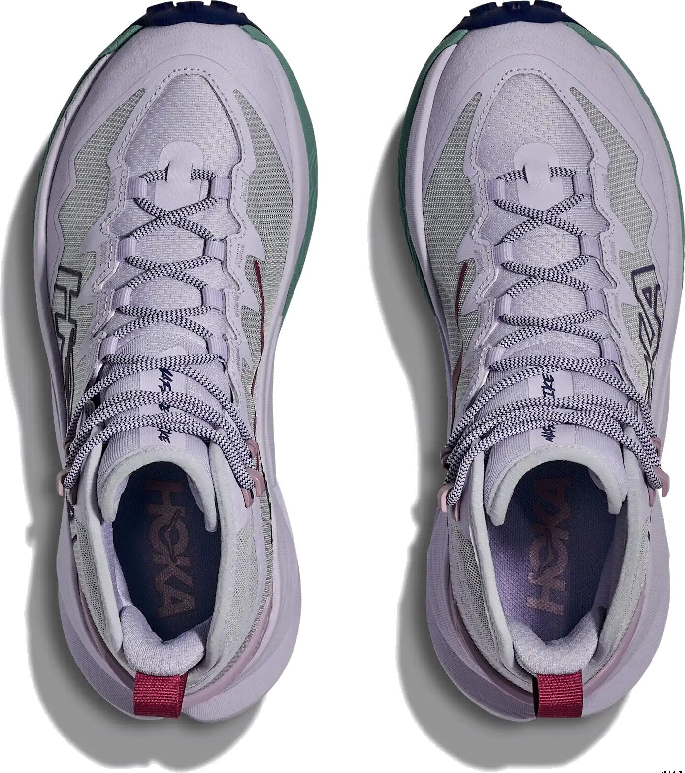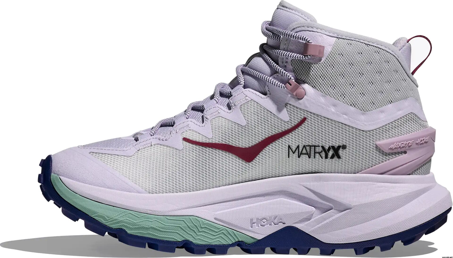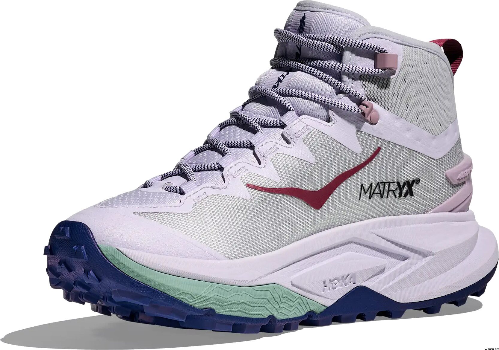 Дамските обувки Hoka Mafate Hike са създадени за издръжливост, фокусирана върху преходи, с леко усещане за бягане, за по-бързо движение с по-малко тегло. Тези туристически обувки съчетават защита по пътеката с пъргава крачка, благодарение на издръжливата горна част и хващащата външна подметка, създадена за уверено ходене. Плюшеното омекотяване и междинната подметка с двойна плътност спомагат за по-гладкото носене през дългите дни. Бързо връзване и поддържаща яка ги правят лесни за обуване и удобни за носене.