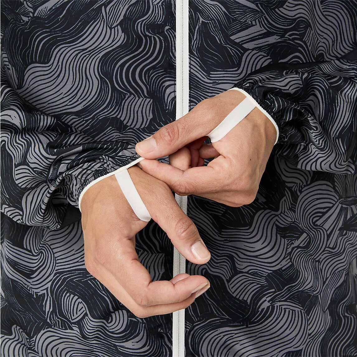- Примки за палци, които помагат за задържане на ръкавите по време на движение