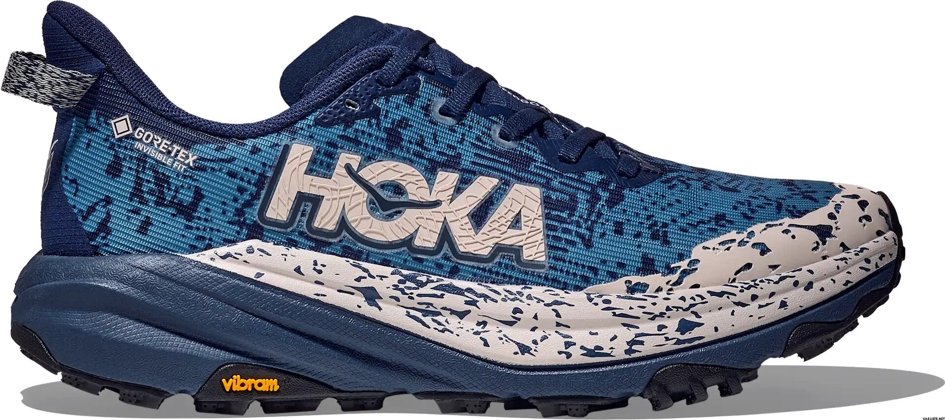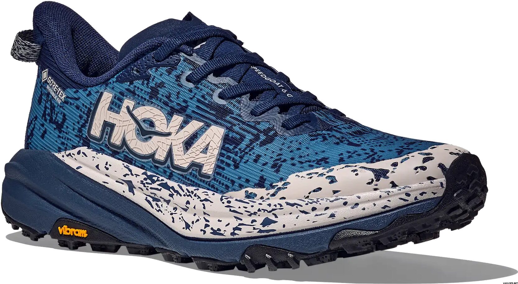 Дамските обувки Hoka Speedgoat 6 GTX са проектирани да се справят с лекота с мокри и кални пътеки. С иновативната водоустойчива мембрана Gore-Tex Invisible Fit, тези обувки предлагат по-лека и по-гъвкава конструкция, намаляваща точките на натиск за повишен комфорт. Подметката Vibram Megagrip с Traction Lug осигурява превъзходно сцепление върху рохкав терен, докато подсилената яка на петата и защитната част на пръстите осигуряват стабилност и защита по неравни пътеки. Широк калъп.