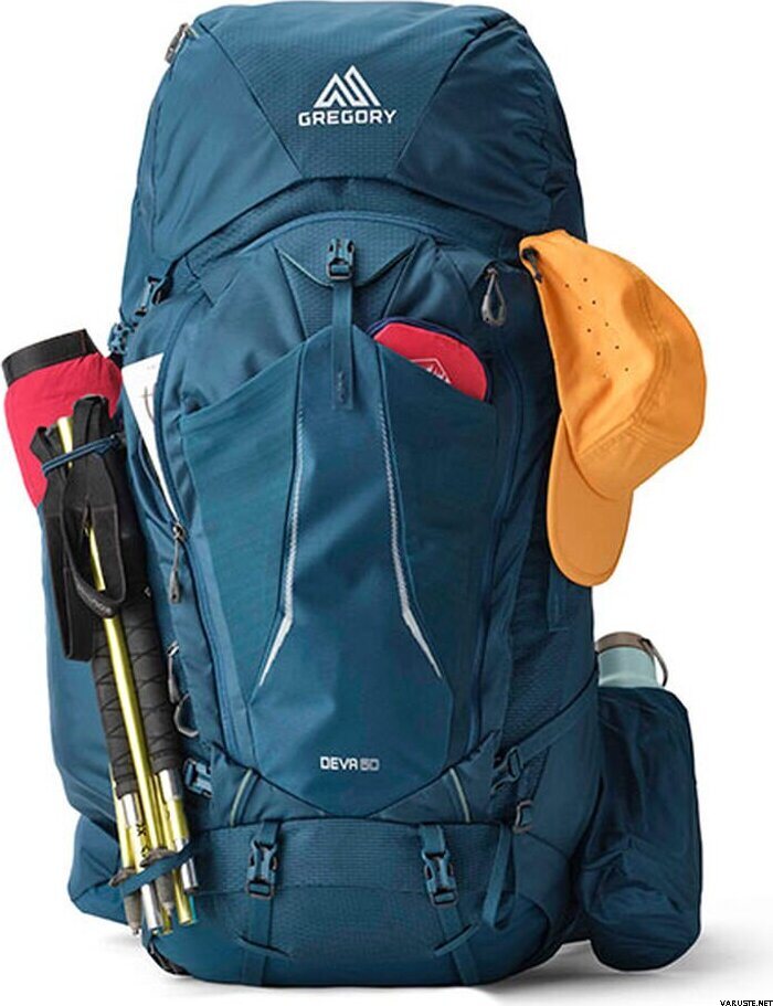 Gregory Deva 60 се откроява като висококачествена дамска раница за ефикасни многодневни преходи, благодарение на следващия тялото си колан за ханш FreeFloat и въртящия се раменен колан A3. Раницата е проектирана да се движи естествено с носещия, което помага на тежките товари да се чувстват по-стабилни през дългите дни. Щедрите опции за съхранение, включително преден U-Zip вход и отделно отделение за спален чувал, улесняват опаковането и достъпа до екипировка в лагера или на пътеката. Дишащият мрежест заден панел AirCushion и конструкцията на колана, фокусирана върху комфорта, намаляват точките на натиск по време на продължително носене.