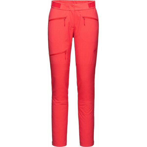 Pordoi SO Pants Women, technical soft shell pants for mountaineering, alpine climbing, via ferrata and hiking. MAMMUT Phase Weave allows the seamless integration of a woven rib on the knee for exceptional freedom of movement and extra protection from abrasion. The Pordoi pants are lightweight, innovative mountain sports pants with a wide range of functional features, including several pockets, an adjustable waistband, robust material and much more. Extra-flexible pants on the mountain.