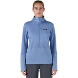 The Patagonia R1 Hybrid Pullover Hoody Womens is a versatile women's fleece designed for dynamic activities in cooler climates. This technical fleece is crafted from a blend of 93% recycled polyester and 7% elastane, featuring a classic grid pattern that efficiently traps heat and wicks away moisture. Its lightweight and stretchy nature make it an excellent choice for layering, while its construction in a Fair Trade Certified factory underscores its commitment to ethical production.
