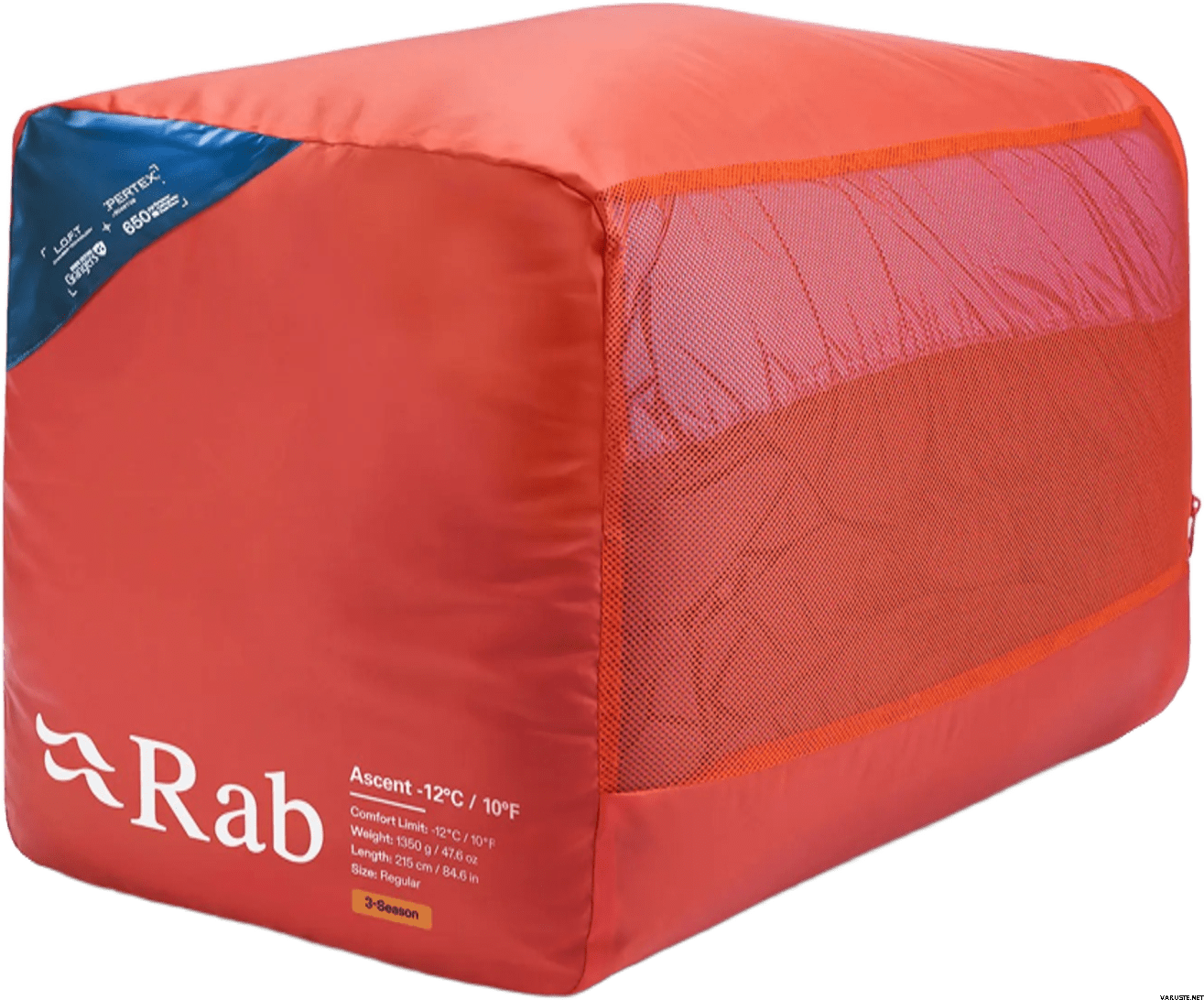 Rab Ascent -12C / 10F vyniká jako spolehlivý, tepelně úsporný spacák určený pro náročné noci bez zbytečného objemu. Tento péřový spacák je určen pro trekking a batůžkářství a kombinuje ochrannou vnější tkaninu s prostorným tvarem, který uživateli umožňuje přirozenější odpočinek.