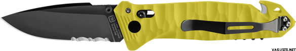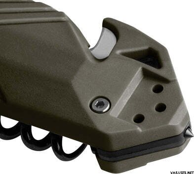 • Integrovaný nůž na popruhy určený pro rychlé stříhání bezpečnostních pásů a šňůr