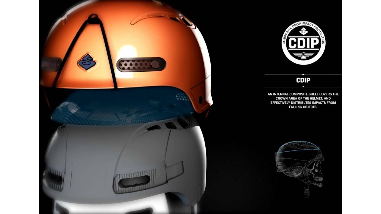 • Composite Drop Impact Protection (CDIP): An internal composite shell that covers the crown area of the helmet. The purpose of the CDIP shell is to disperse impacts from falling objects while allowing us to keep the volume of the helmet down.