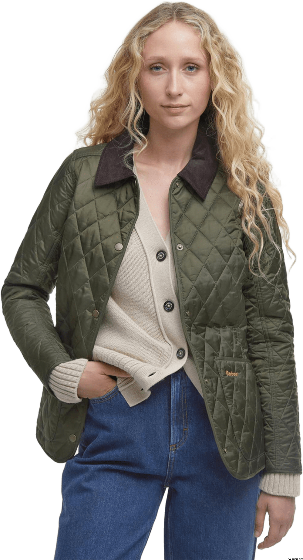 The Barbour Argill Wax Womens jacket offers a chic and tailored look with its quilted design and flattering body seams, creating a feminine silhouette. This women's jacket features a classic sit-down cord collar and a diamond-quilted exterior, embodying the iconic Barbour style. Perfect for adding a touch of elegance to any outfit, it combines functionality with timeless fashion.