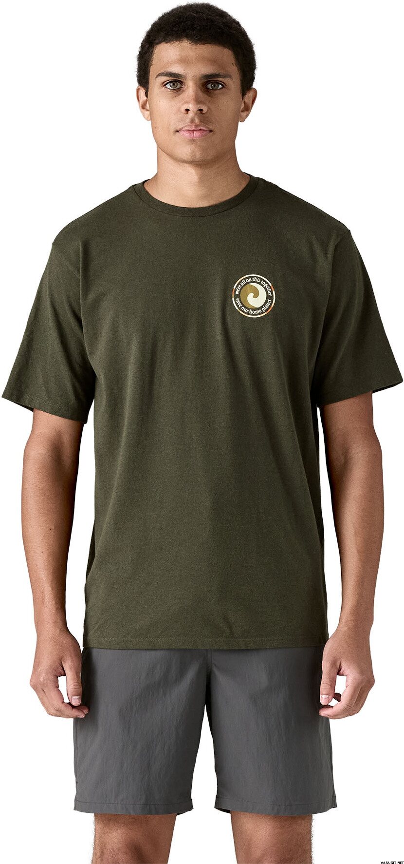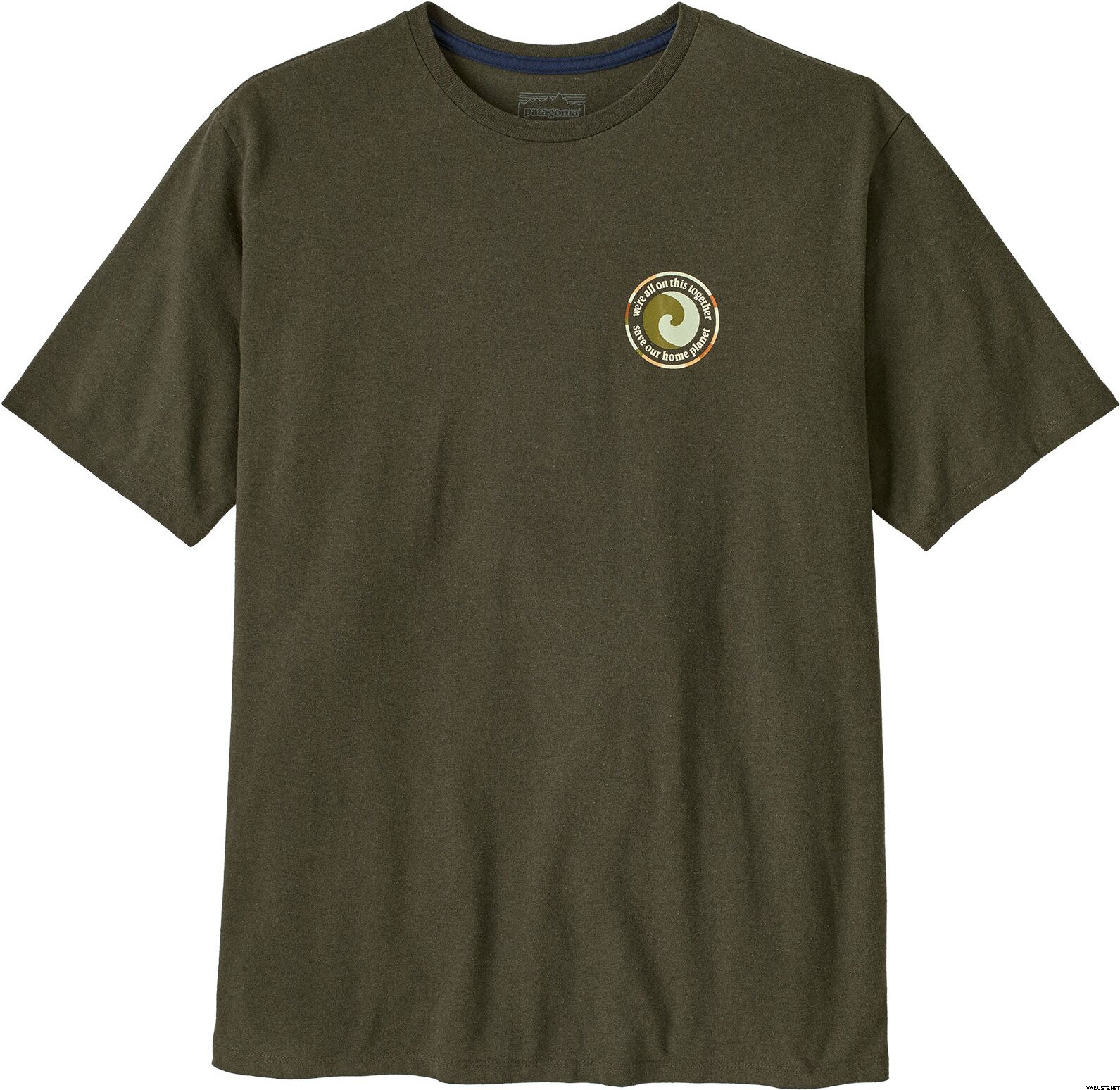Designet på Patagonias Unity Fitz-stile viser et stiliseret billede af Jorden sammen med budskabet "vi er alle sammen om det her", hvilket afspejler essensen af vores formålserklæring, "red vores hjemmeplanet." Dette design er trykt på T-shirts fremstillet af 100 % genbrugsstof, hvilket understreger vores forpligtelse til at reducere brugen af nye råmaterialer. Fremstillet på en Fair Trade Certificeret fabrik.