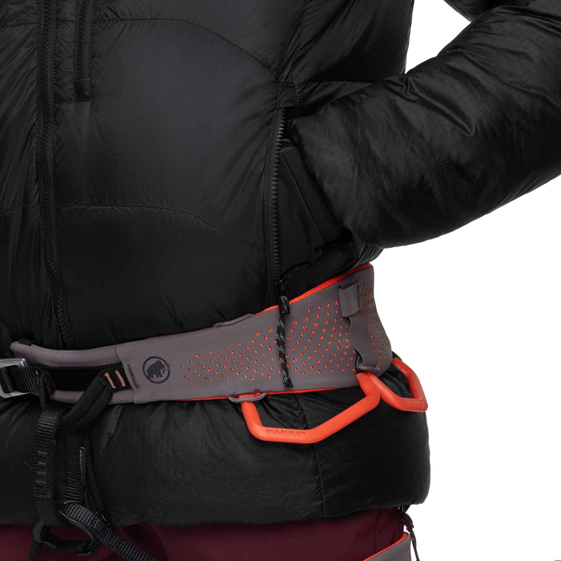 Mammut Taiss Pro Belay IN Hooded Jacket Men er en robust dunjakke til mænd, der er designet til ekstreme vinterforhold. Den er designet til at blive båret over en hardshell-jakke og udmærker sig ved sikringer, bivuakker og nedkørsler under frysepunktet. Jakken har DRY DOWN-isolering, der sikrer varme, selv når den er fugtig, mens high-loft syntetisk isolering forbedrer beskyttelsen i mere udsatte områder. Dens boxwall-konstruktion forhindrer kolde pletter, og funktioner som en halsmanchet-tunnel, strækmanchetter og højt monteret justering af sømmen hjælper med at holde på varmen. Det slidstærke yderlag tilbyder fremragende vejrbestandighed og holdbarhed, hvilket gør den ideel til udfordrende vinterbjergbestigning.