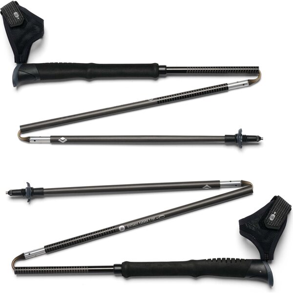 Black Diamond Distance Carbon Z FKT er bygget til hurtig udrulning og let effektivitet på hurtige bjergture. Disse stave er designet til løb og konkurrence, hvor hurtige overgange og skarp kraftoverførsel er vigtige. Et magnetisk hurtigkoblingssystem til handskerne fremskynder fastgørelsen og afmontering af stavene med en simpel knapudløsning. Konstruktionen i fuld kulfiber og et udvidet greb holder svingvægten lav, samtidig med at de giver sikre håndpositioner i stejlt terræn.