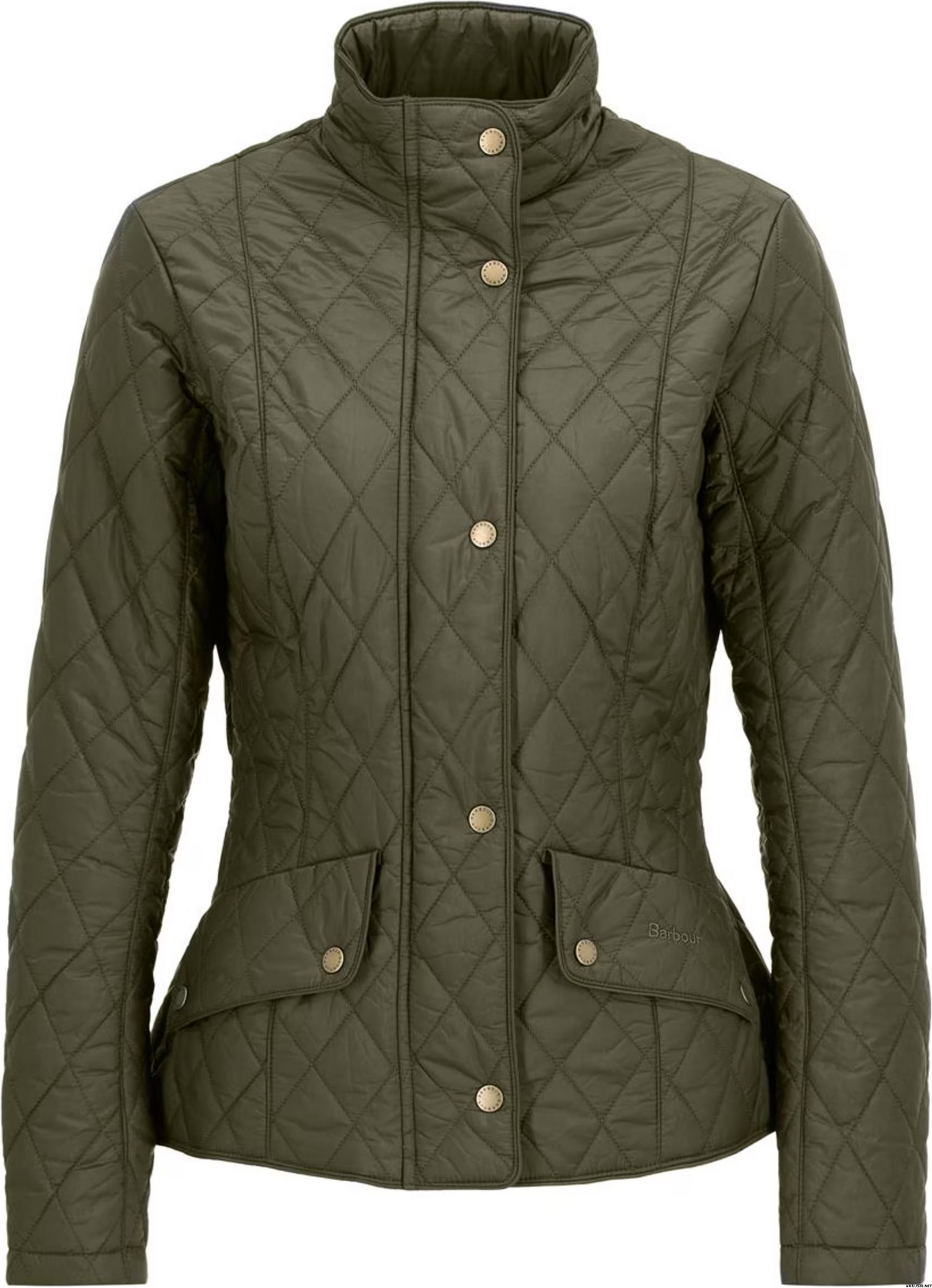 Barbour Flyweight Cavalry Quilted Jacket til kvinder er en stilfuld, rideinspireret frakke med et klassisk diamantmønster. Denne lette jakke tilbyder en elegant, feminin silhuet med taljejusteringer og en tragtudskæring, hvilket gør den perfekt til forårsudflugter. Forstærket med Barbours signaturmessingbeslag og praktiske skrålommer kombinerer den funktionalitet med tidløs elegance.