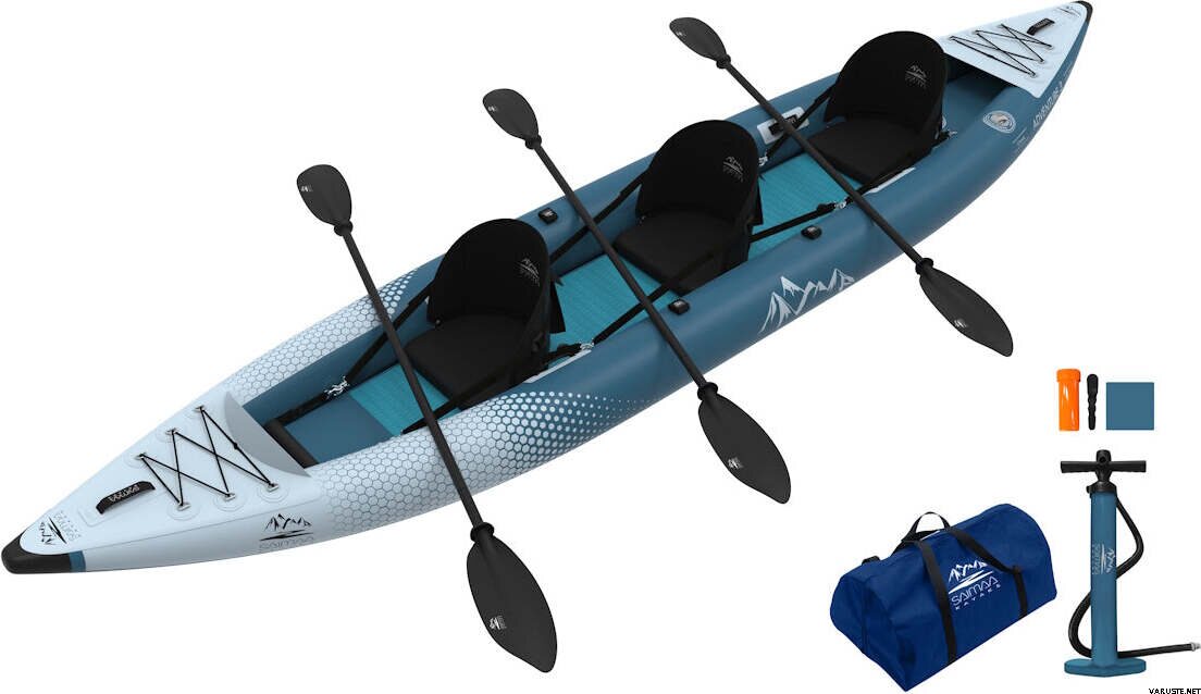 Saimaa Kayaks' oppustelige Adventure 3 turkajak til tre personer er den største model af vores oppustelige kajakker. Kajakken har plads til to voksne og et barn eller endda en hund. Kajakken har en god bæreevne og er velegnet som en generel og turkajak for hele familien på grund af dens stabilitet, brugervenlighed og sikkerhed. En komplet pakke med alt udstyr klar til vandet.