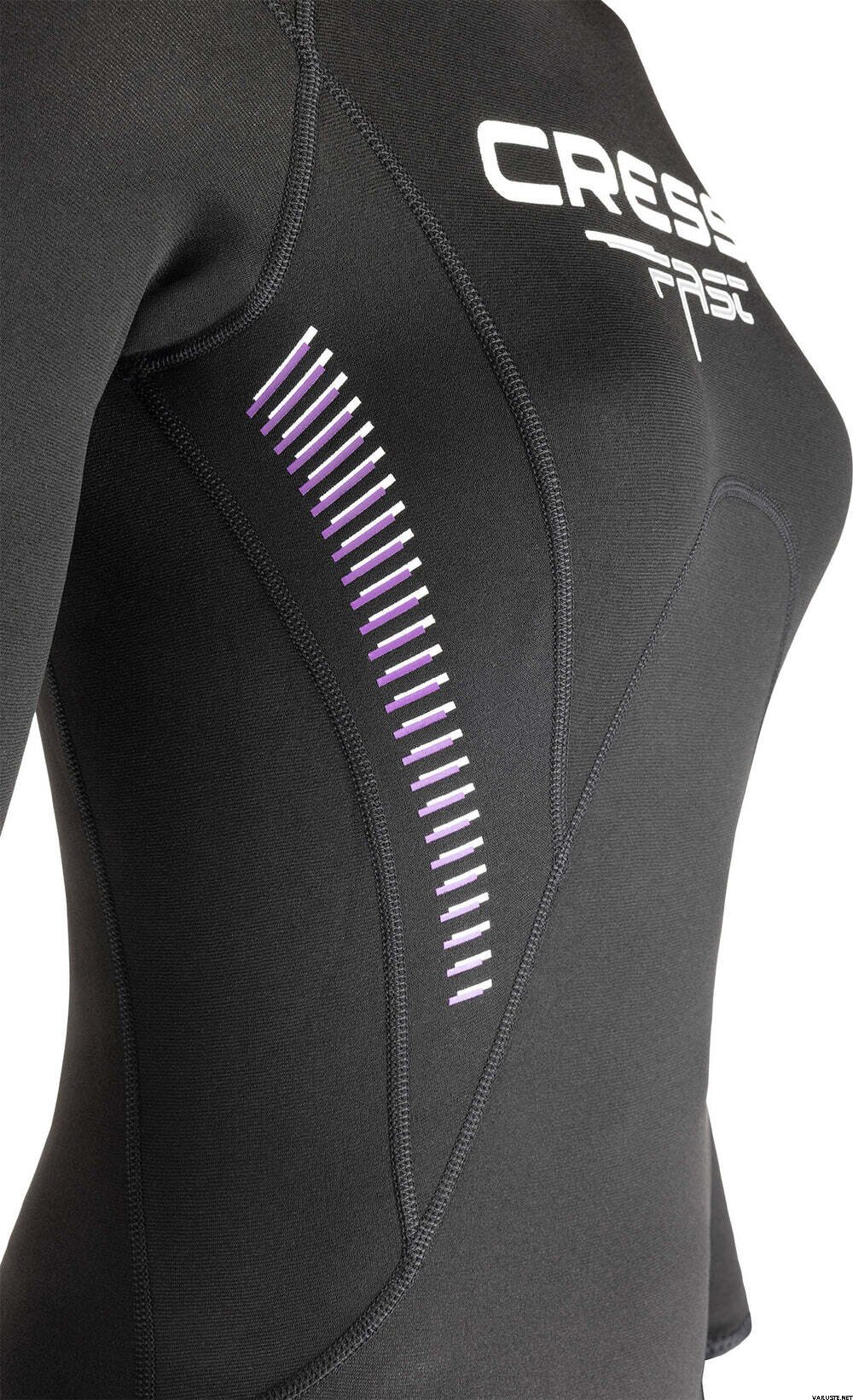 Cressi Fast 1mm Womens er en slank, varmebevarende våddragt designet til at forblive smidig under vandet, samtidig med at den begrænser kompression i dybden. Denne heldragt er velegnet til dykning, snorkling, surfing, windsurfing og andre vandsportsgrene, hvor bevægelsesfrihed er vigtig.