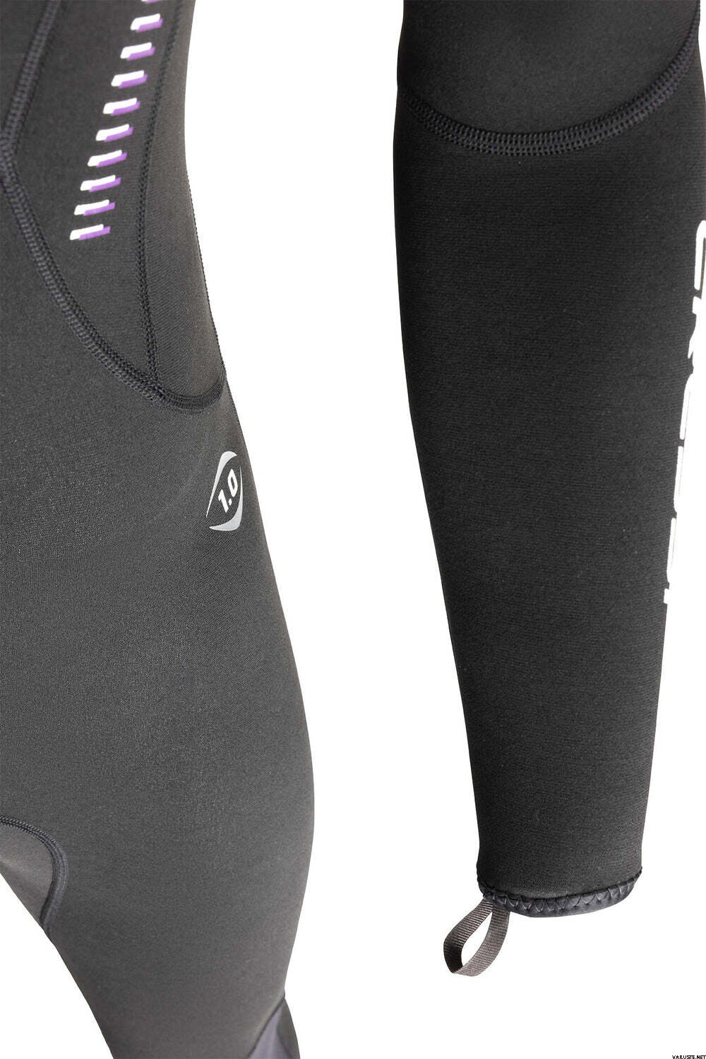 Forformede ben gør, at finnespark føles mere naturlige, mens den forbedrede halslukning og lynlåsforsegling bagpå arbejder sammen om at reducere vandindtrængen under brug.