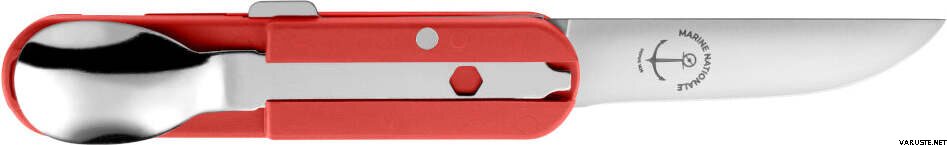 Bivouac French Navy Camp Knife er et praktisk og kompakt multiværktøj fremstillet i Frankrig. Designet i Thiers afspejler den den originale kniv, der blev udstedt til den franske flåde. Denne alsidige kniv er perfekt til forskellige udendørsaktiviteter såsom picnics, vandreture, camping og fiskeri. Dens hærdede rustfri stålklinge er velegnet til både spisning og udendørs opgaver. Det ergonomiske ABS-håndtag er let, stødsikkert og har et patenteret glidesystem, der holder en gaffel og ske på begge sider.