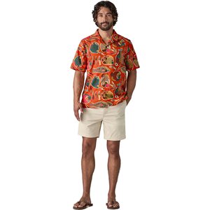 The Patagonia Tidal Threads Camp Shirt Mens is crafted for durability and comfort, featuring a lightweight and breathable 100% organic cotton fabric. This men's shirt, with its button-front style and single chest pocket, showcases aloha-inspired prints that reflect the beauty of tropical landscapes and oceans. Produced in a Fair Trade Certified factory, it supports ethical labor practices while offering a stylish and eco-friendly choice for warm weather.