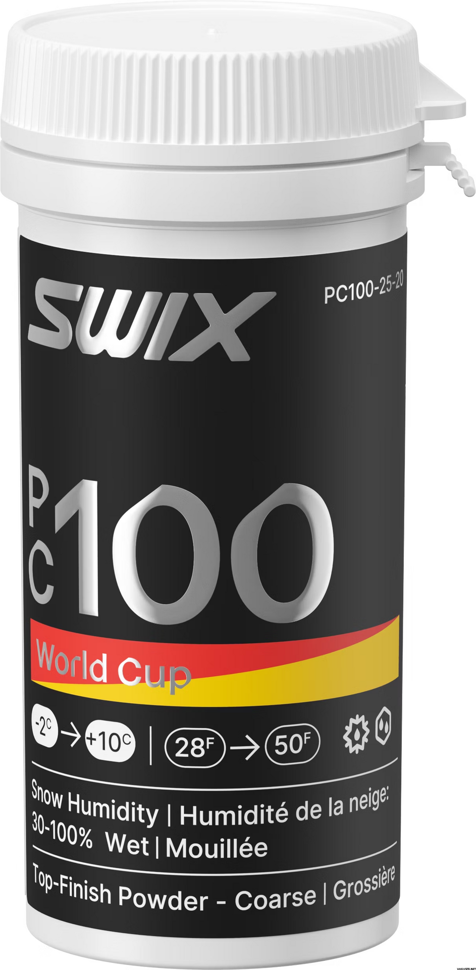 Swix World Cup Powder Coarse Wet, 20 g ist ein Premium-Top-Finish-Pulver für anspruchsvolle Schneebedingungen. Dieses Weltcup-Pulver eignet sich hervorragend für nassen, groben und bearbeiteten Schnee und nutzt die Swix Nano Contact-Technologie zur Erzeugung einer nanostrukturierten Oberfläche.