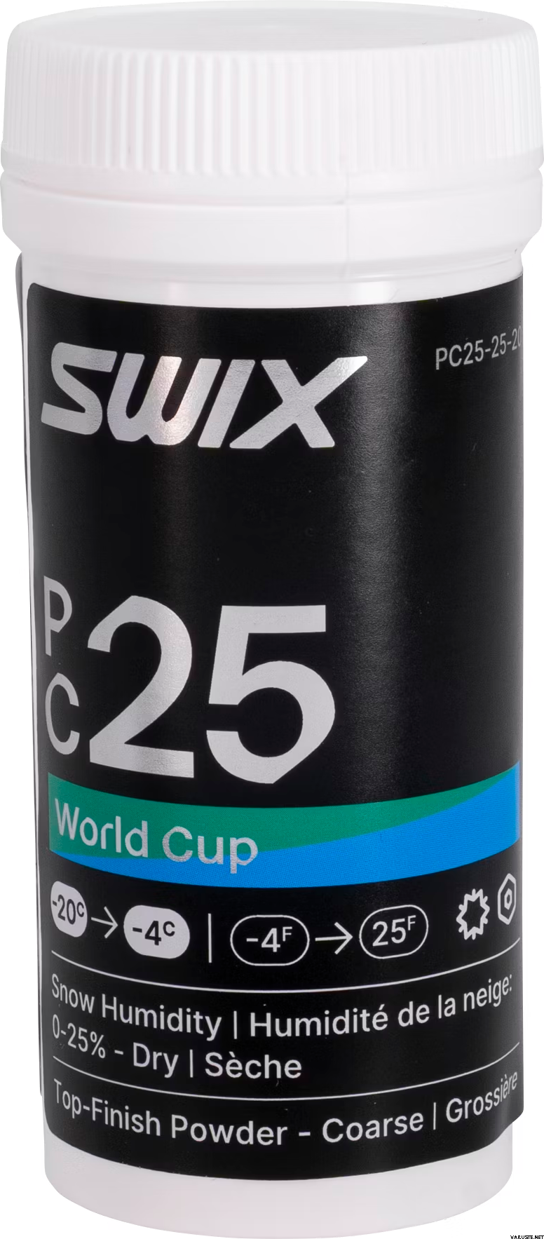 Swix World Cup Powder Coarse Dry, 20 g ist ein erstklassiger Rennpulverschnee, der speziell für trockene, grobe und verformte Schneeverhältnisse entwickelt wurde. Dank der Swix Nano Contact Technologie erzeugt er eine nanostrukturierte Oberfläche, die die Reibung deutlich reduziert, indem sie die Kontaktfläche zwischen Skibelag und Schnee minimiert. Dieser Hochleistungspulverschnee eignet sich hervorragend für Umgebungen mit niedriger Luftfeuchtigkeit (0–25 %) und ist besonders effektiv auf hartem, verformtem Schnee.