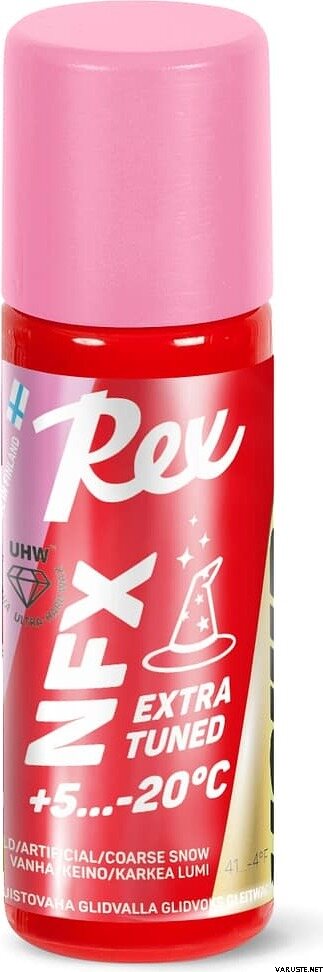 Rex NFX Pink Extra Tuned Liquid Glider +5...-20°C 60ml ist ein Hochleistungs-Flüssiggleiter, der speziell für die optimale Anwendung auf schmutzigem und grobem Schnee entwickelt wurde. Dieses Produkt basiert auf einer weiterentwickelten Version des NF41 Pink/Green UHW-Wachses und wurde mit NFX41-Pulver für überragende Ergebnisse optimiert. Die Zugabe von OLOS-Finishing-Pulver sorgt für minimale Oberflächenenergie und ultraschnelles Gleiten. Dank seiner fortschrittlichen Nano-Matrix-Technologie ist es in einer praktischen Schwammflasche verpackt und eignet sich daher sowohl als Finish-Schicht auf NF-Wachsen als auch als eigenständige Wachslösung nach dem Glide Cleaner.