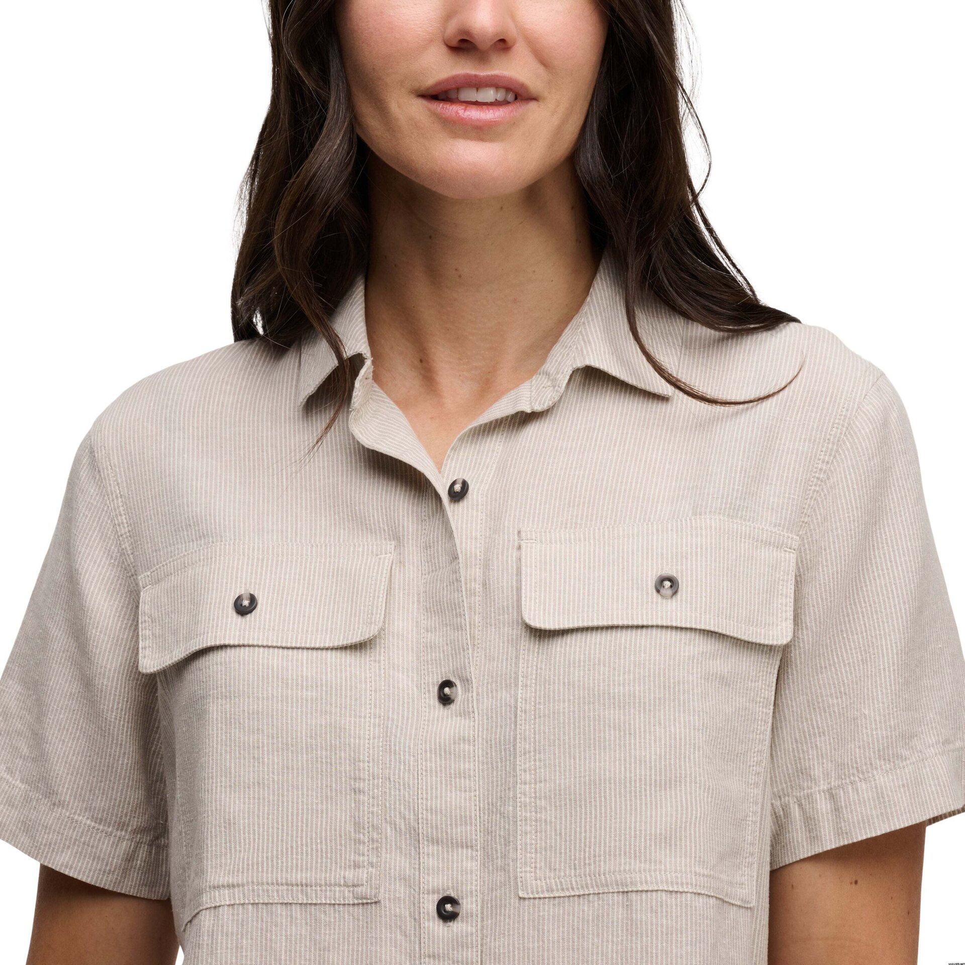 Das Black Diamond Scenic Route Kurzarmhemd für Damen ist ein leichtes, bequemes Hemd mit Knopfleiste, das sich ideal für entspannte Tage und warmes Wetter eignet. Mit seinem klaren, zeitlosen Look ist es perfekt für Reisen, Campingausflüge, das Büro und den Alltag in der Stadt. Die Materialmischung aus Hanf und Tencel sorgt für ein luftiges Tragegefühl bei steigenden Temperaturen. Zwei Brusttaschen mit Druckknopf bieten Platz für kleine Utensilien.