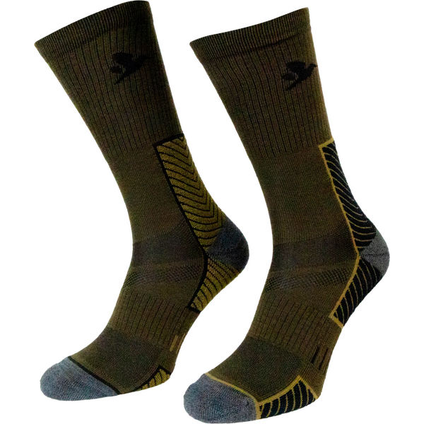 Die Seeland Field Merino-Socken im 2er-Pack sind warme, leistungsorientierte Socken, die Temperatur und Schweißbildung an aktiven Tagen bei kaltem Wetter optimal regulieren. Das Zweierpack eignet sich ideal für Jagen, Wandern und andere anstrengende Outdoor-Aktivitäten, bei denen Komfort über lange Zeiträume wichtig ist. Merinowolle wirkt auf natürliche Weise geruchshemmend, während stützende und gepolsterte Zonen für Langlebigkeit und einen stabilen Sitz in Stiefeln sorgen.