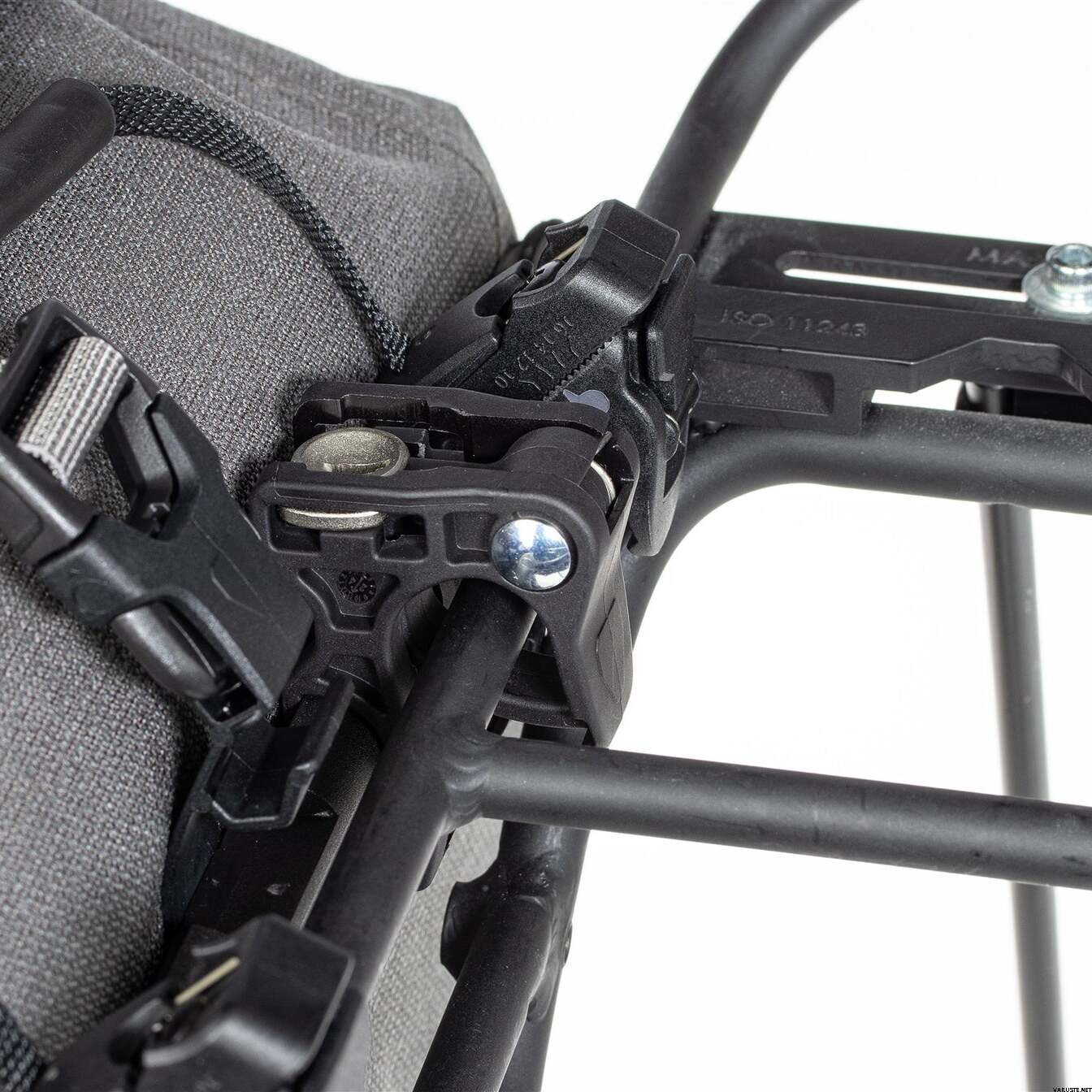 - Bleibt nach dem Entriegeln offen, um das Anbringen und Abnehmen von Taschen zu erleichtern.