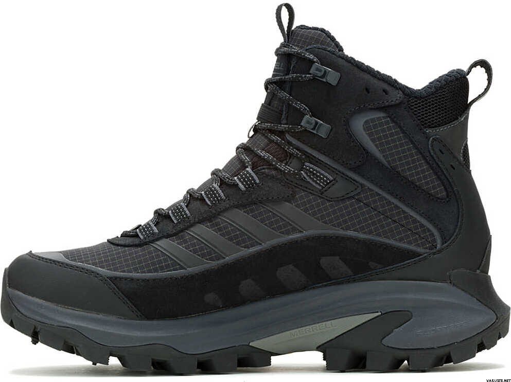Die Merrell Moab Speed 2 Thermo Mid Waterproof Herrenstiefel bieten außergewöhnliche Wärme und Schutz vor den Elementen, ohne dabei unnötig schwer zu sein. Diese speziell für Winterwanderungen entwickelten Stiefel verfügen über ein Obermaterial aus wasserdichtem Wildleder und reißfestem Nylon sowie eine wasserdichte Membran, die Feuchtigkeit abhält. Mit 200 Gramm Primaloft Gold Eco-Isolierung und einer Solarcore Aerogel-Einlegesohle bieten sie hervorragende Wärme und Flexibilität und garantieren so Komfort auf langen Wintertouren.