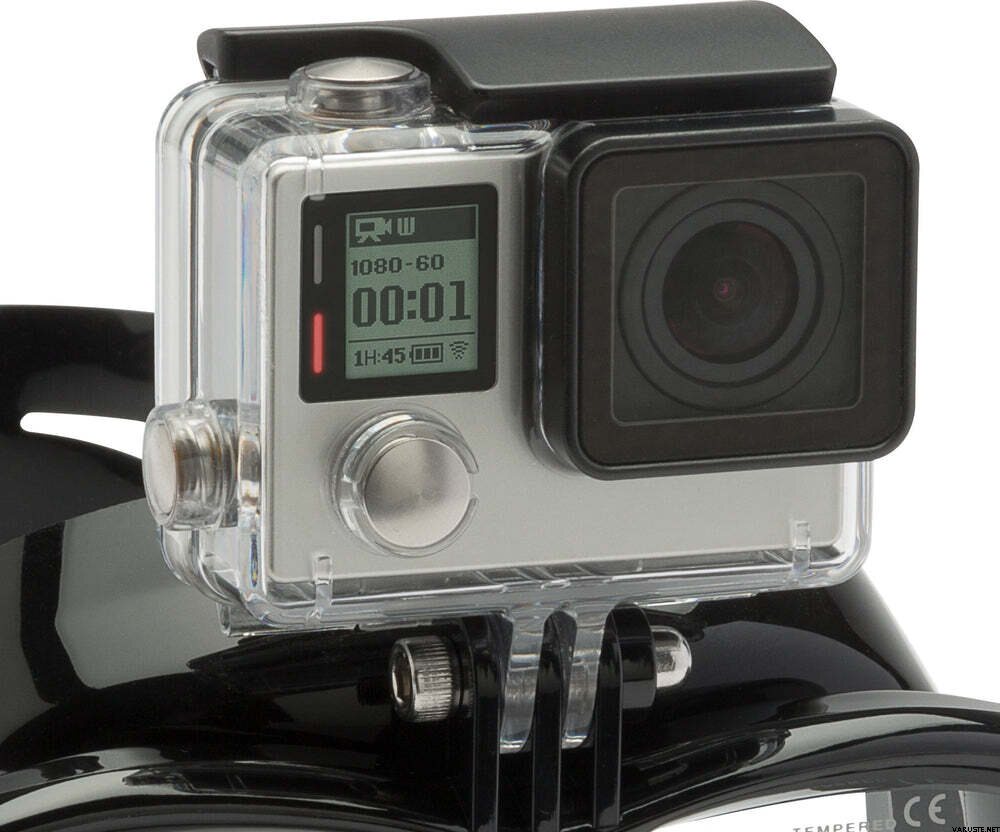- Integrierter Adapter im Rahmen zur direkten Montage einer Action-Kamera an der Maske
