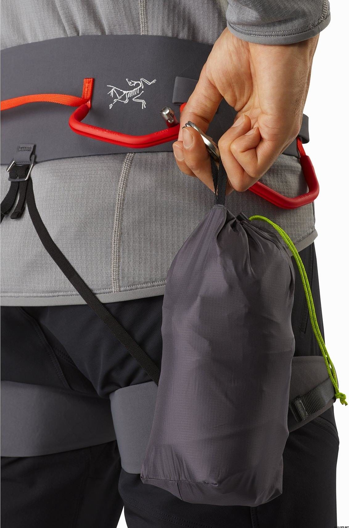 - Includes stuff sack with webbing loop to clip to a harness