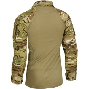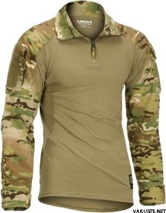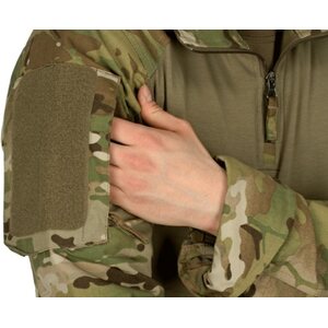 Uncompromisingly designed combat-specific garment specially to be worn under body armor. Its anatomic fit provides great wearing comfort. The torso is made of a fire-retardant fabric, which has been developed for military & law enforcement use and won't melt or drip like polyester when exposed to thermal threats or flames. Moisture wicking capability and sweat absorption in combination with soft feeling surface keeps dry and comfortable during your combat missions. Reinforced elbow areas can be equipped with removable elbow pads. Zip collar is designed to be worn in different varieties for your comfort and to prevent intrusion of dust. Shoulder area is seamless to avoid pressure when wearing a backpack.