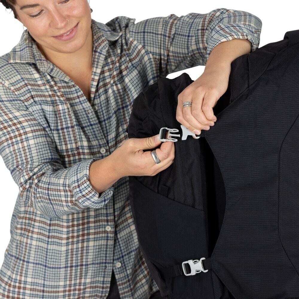 Der Fairview 55 ist Ospreys bisher leichtester Reiserucksack. Ausgestattet mit einer belüfteten Rückenplatte aus Abstandsgeflecht mit Reißverschluss kann der Fairview wie ein Rucksack getragen, aber wie ein Koffer gepackt werden. Das Rückensystem von Fairview bietet eine beeindruckende frauenspezifische Passform mit einem ergonomisch geformten Hüftgurt, Gurt, Joch und Rückenteil. Das starke und langlebige Rückensystem bedeutet, dass Sie Ihre Ausrüstung bequem tragen können, wenn Sie zwischen Hotels, dem Flughafen oder darüber hinaus reisen.