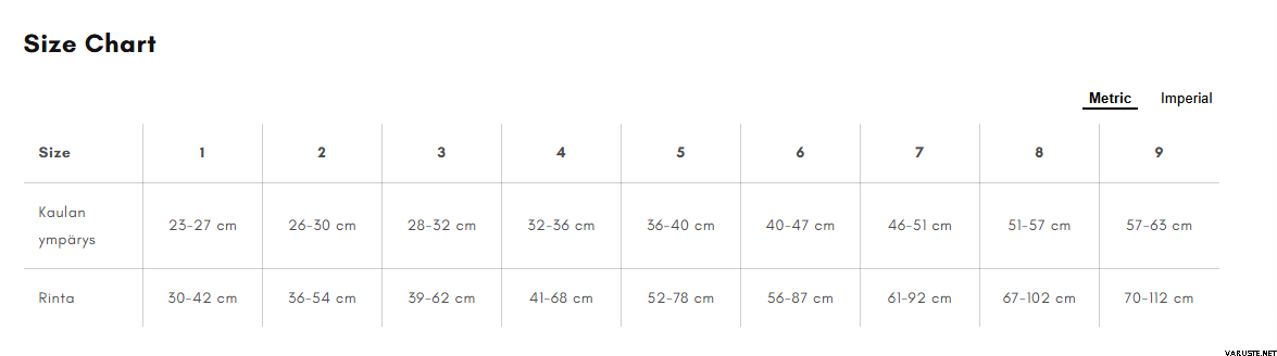 | Μέγεθος | Περιφέρεια λαιμού | Στήθος |