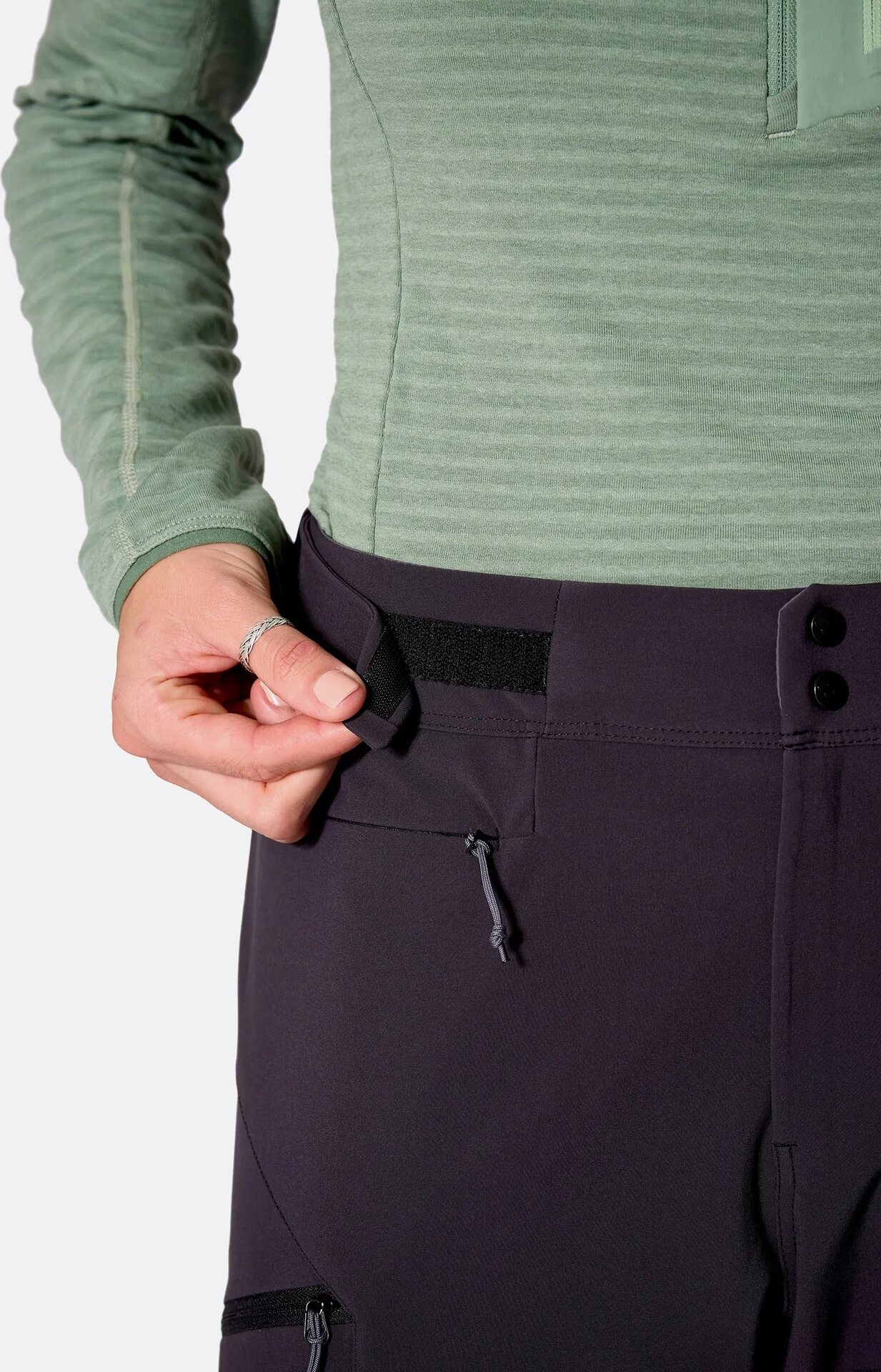 Τα γυναικεία παντελόνια Rab Tour Plus προσφέρουν εξαιρετική κινητικότητα με τον ελαστικό, λεπτό και αρθρωτό σχεδιασμό τους. Κατασκευασμένα από ένα ελαφρώς βαρύτερο ύφασμα Matrix, αυτά τα παντελόνια softshell παρέχουν την προστασία που απαιτείται για τις χειμερινές συνθήκες. Ιδανικά για σκι και ορειβασία, διαθέτουν στοιχεία ειδικά για σκι και αναρρίχηση, διασφαλίζοντας ότι δεν θα μεταφέρετε περιττό βάρος. Τα ενισχυμένα στριφώματα και τα μπαλώματα kicker ενισχύουν την ανθεκτικότητα έναντι των γρατζουνιών από κραμπόν και σκι, επιτυγχάνοντας μια ισορροπία μεταξύ ανθεκτικότητας, ελαφρότητας και ελευθερίας κινήσεων.