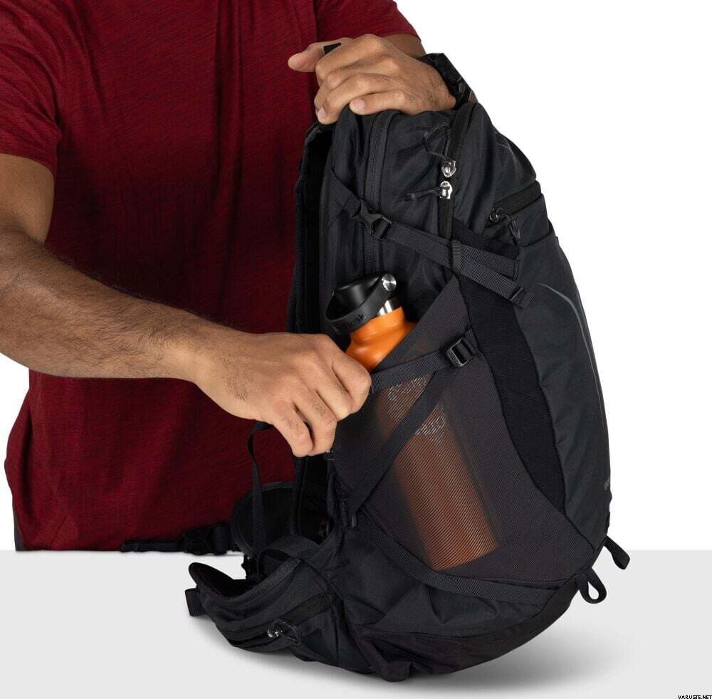 - Οι ελαστικές πλαϊνές τσέπες από πλέγμα μεταφέρουν μπουκάλια νερού και άλλα κιτ γρήγορης πρόσβασης