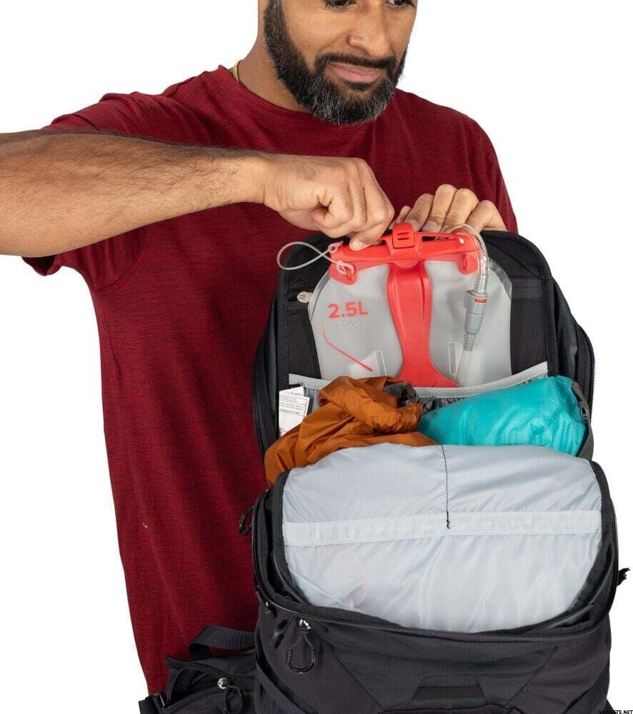 Μια ρυθμιζόμενη ζώνη και μια υποστηρικτική ζώνη ισχίου βελτιώνουν την άνεση όταν ο ρυθμός επιταχύνεται ή το μονοπάτι γίνεται απότομο. Ένα χιτώνιο ενυδάτωσης με δρομολόγηση σωλήνα διατηρεί το πόσιμο νερό σε κοντινή απόσταση (η δεξαμενή πωλείται ξεχωριστά).
