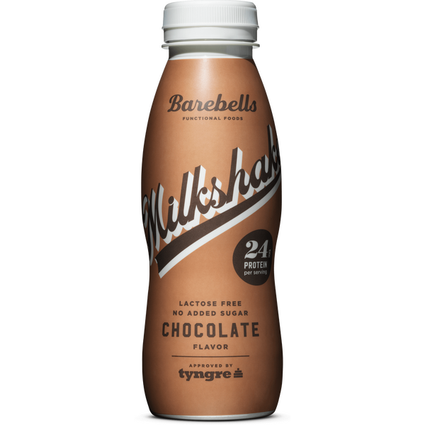 Το Barebells Milkshake Σοκολάτας 330ml προσφέρει μια κλασική αίσθηση σοκολατένιου μιλκσέικ σε στιλ εστιατορίου, ενώ παράλληλα περιέχει 24 γραμμάρια πρωτεΐνης ανά μπουκάλι. Αυτό το έτοιμο προς κατανάλωση μιλκσέικ είναι μια εύχρηστη επιλογή μετά την προπόνηση ή όποτε ένα γρήγορο σνακ πρωτεΐνης ταιριάζει στην ημέρα. Δεν περιέχει λακτόζη και ζάχαρη, διευκολύνοντας την προσαρμογή διαφορετικών διατροφικών αναγκών μεταξύ των γευμάτων.