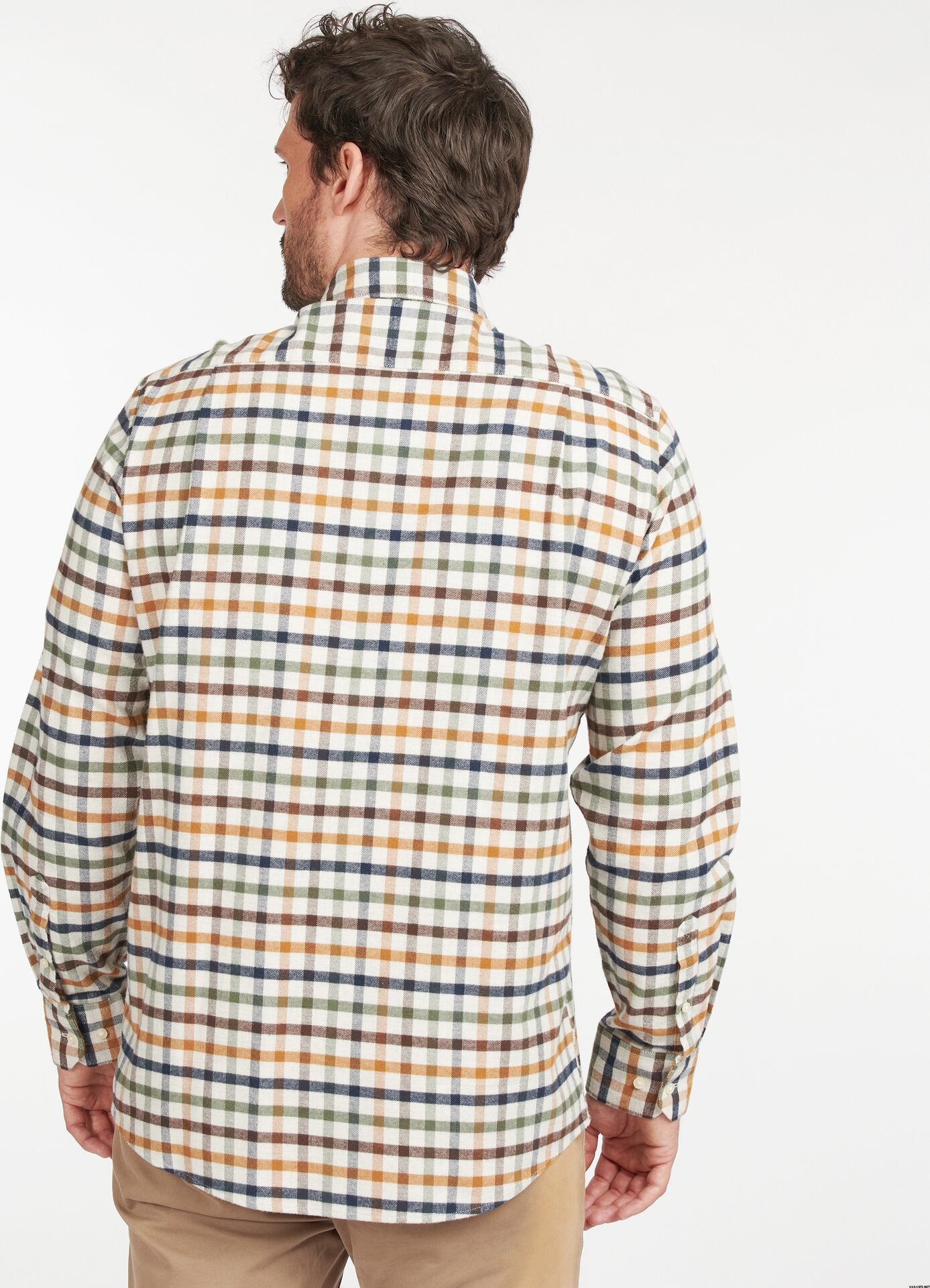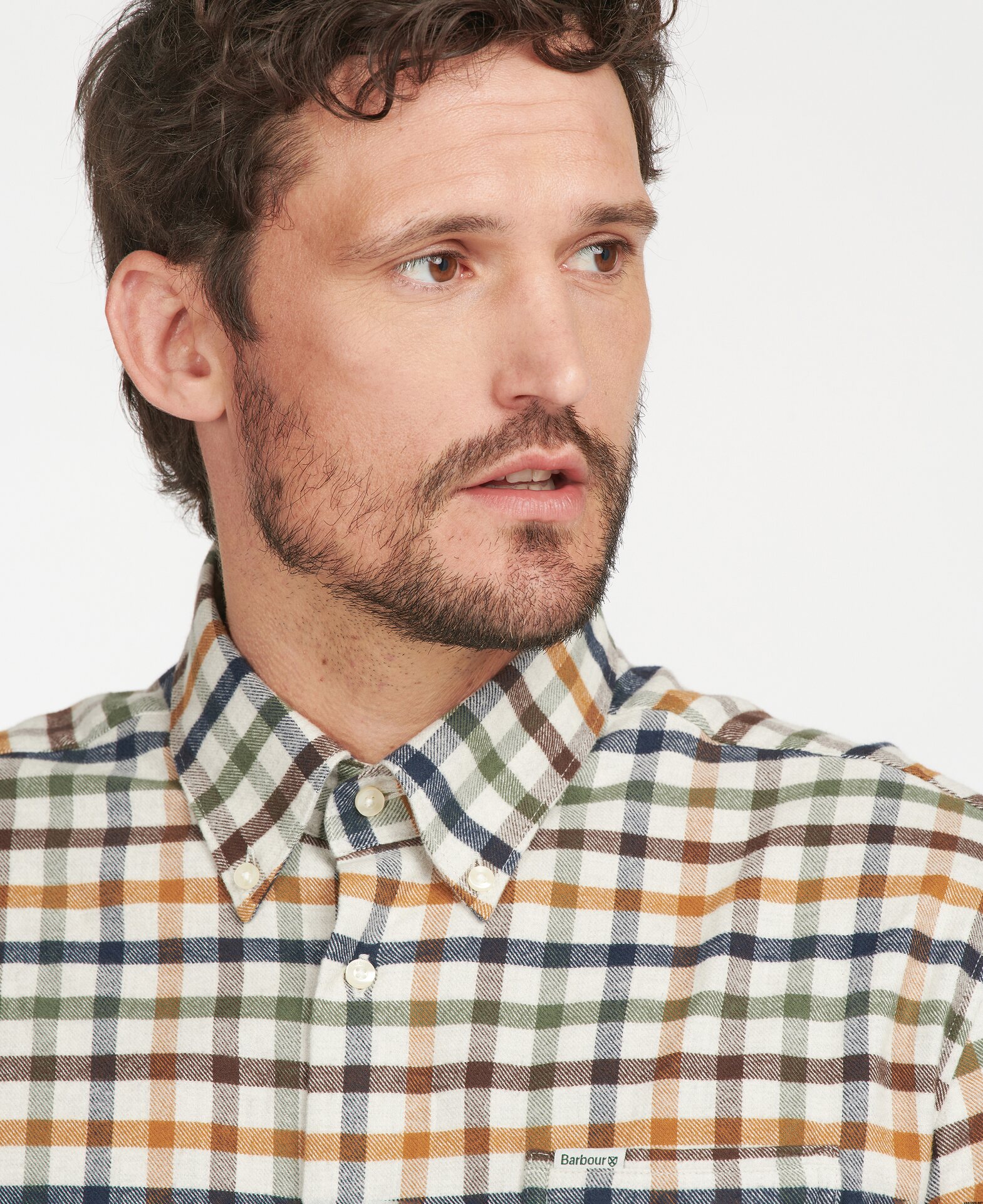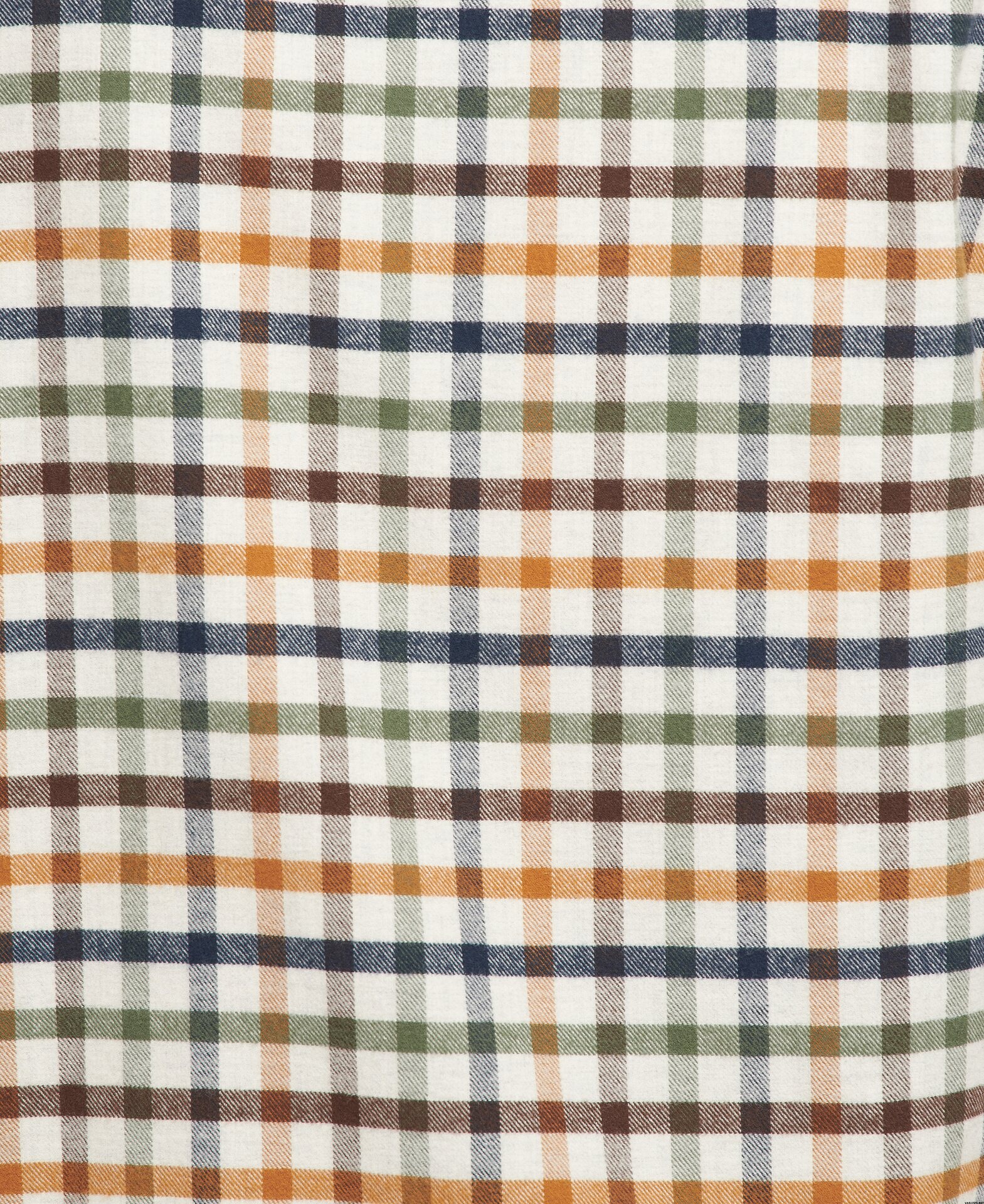 Long sleeved tattersall check shirt in classic colourways with a button down collar and branding tab to the wearers left chest.