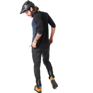 No matter how wet and dirty the trails are, these pants have you covered. The robust, breathable membrane protects you from the elements and keeps you dry. The robust material makes the rain shorts impervious and the loose fit does not restrict while pedaling, even when wearing knee pads. An adaptable belt takes care of a comfortable fit, the waterproof stretch- segment on the back provides freedom of movement.