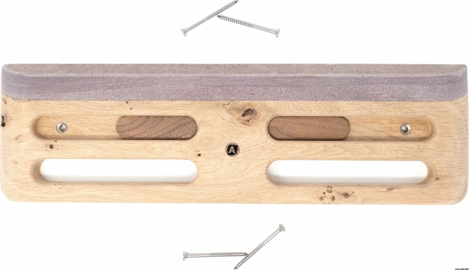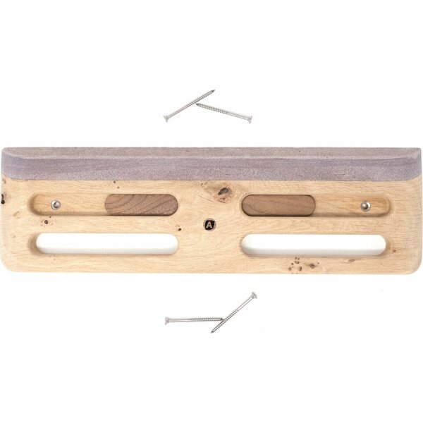 Nature Climbings revolutionary hangboard, the STOAK board, is the worlds first climbing hangboard which combines real STONE and solid OAK. Based on a rounded and sloped stone rail design combined with rounded wide wooden solid oak pockets and solid walnut wood inlays it includes everything you need to train efficiently at home. The stone will gently work your skin and hanging on solid oak is something you will never go back from. The friction and tension required is perfect.