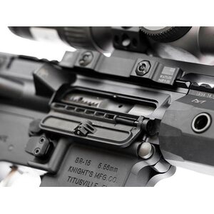 Magpul polymer case port cover. The innovative design no longer requires disassembling the entire gun to install the cover, but the cover has a spring-loaded latch that allows the cover to be attached without tools.